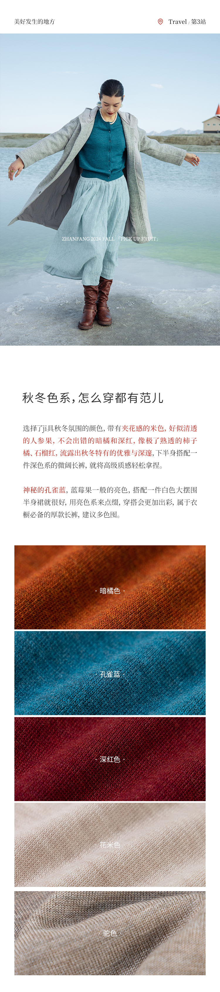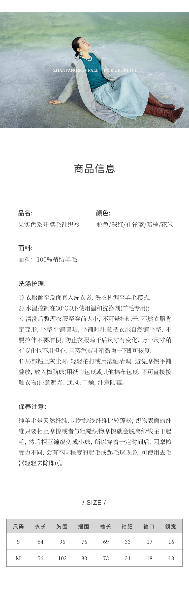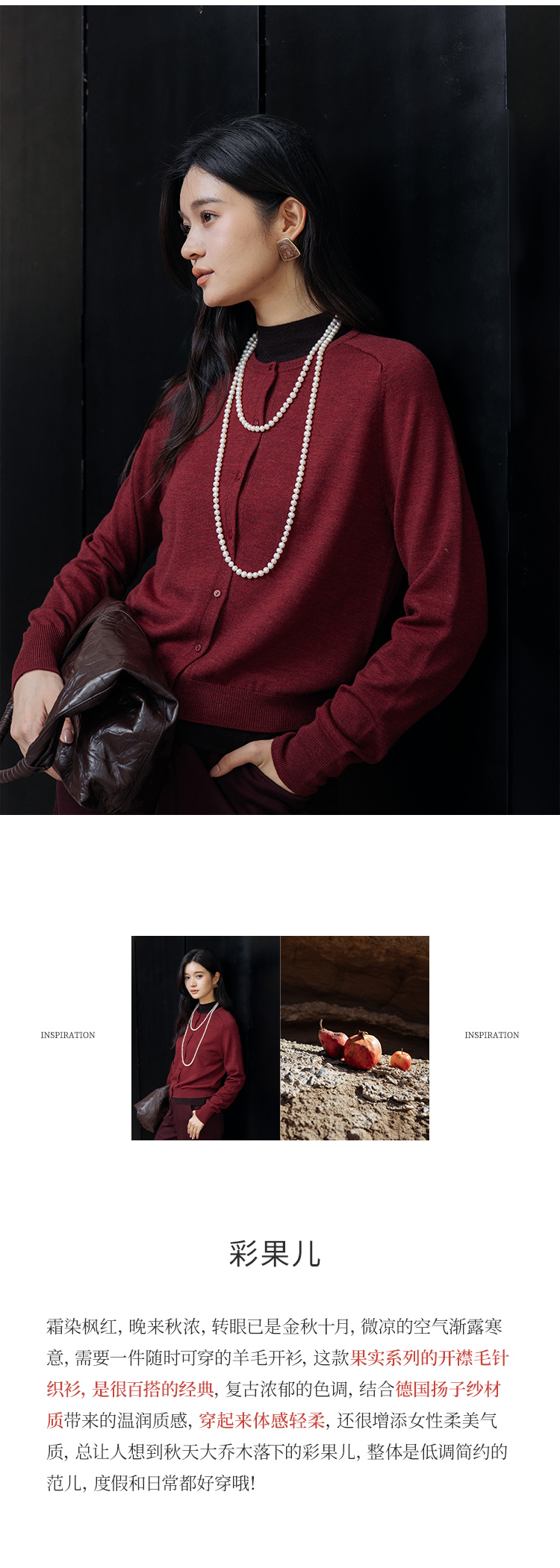 绽放旅行女装700朵/彩果儿针织衫扬子纱果实色系圆领短款羊毛开衫