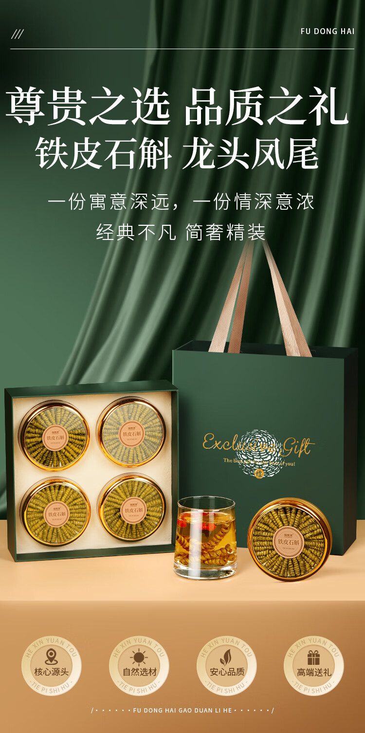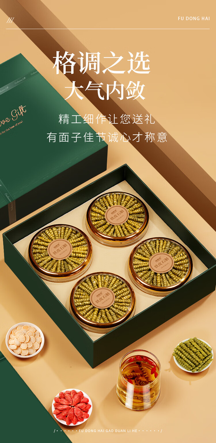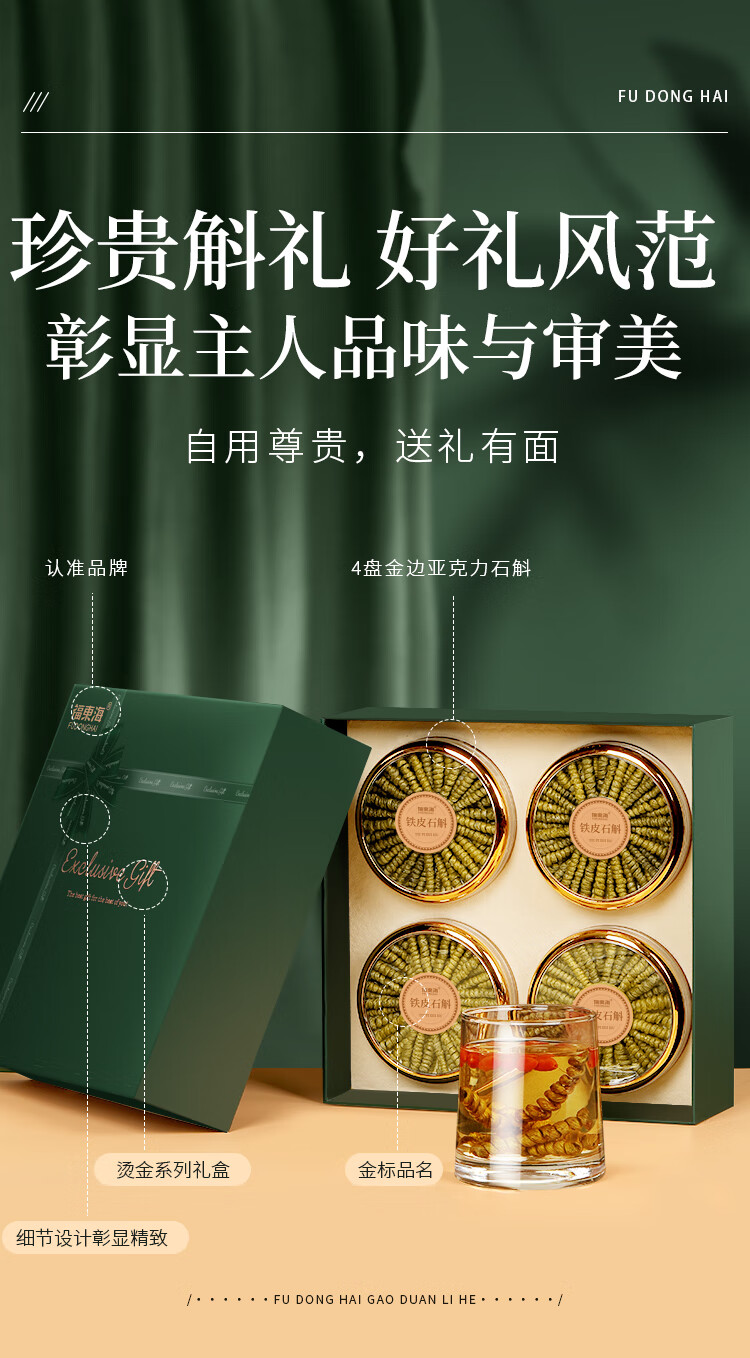 福东海 长铁皮石斛礼盒220克(55克*4罐)【中秋节】礼品礼物 特优级胶质满 石斛粉泡茶送父母长辈礼品