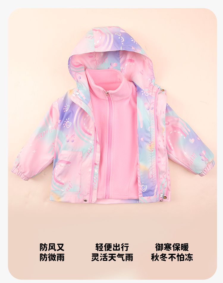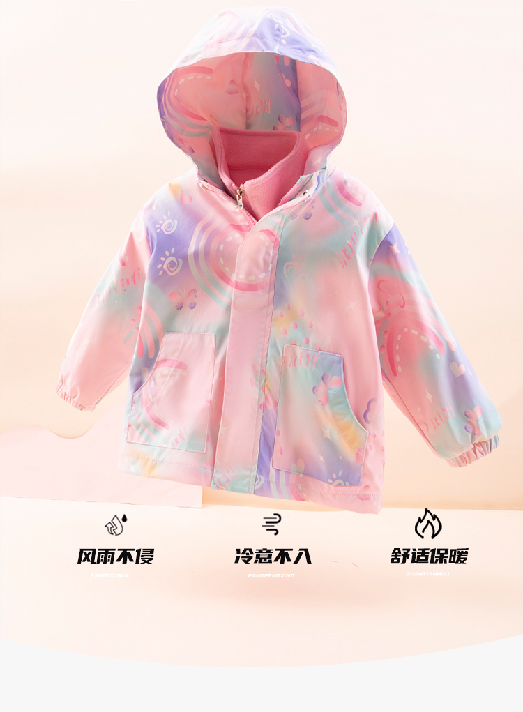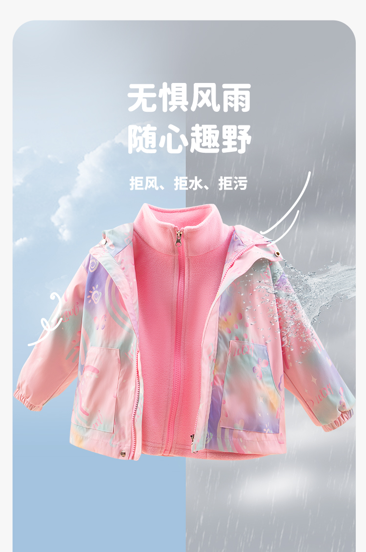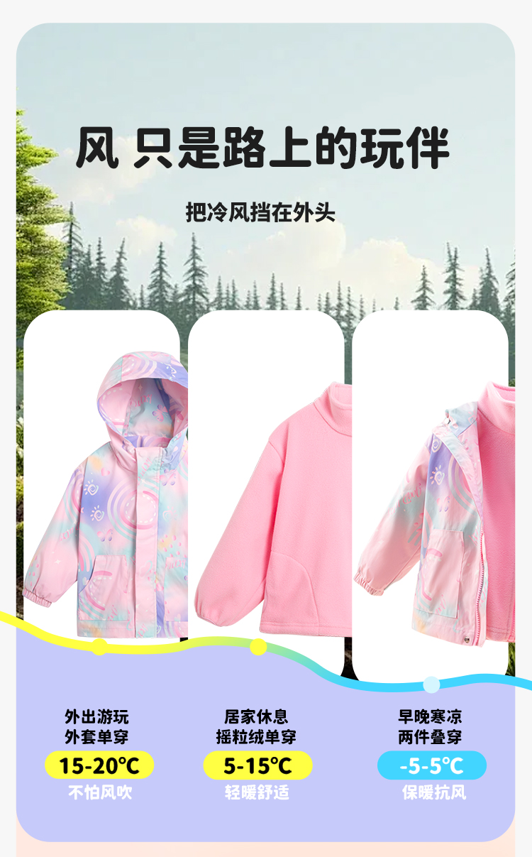 贝贝怡儿童冲锋衣内胆两件套冬装2024新款男女童三合一外套登山服ZB3DS014