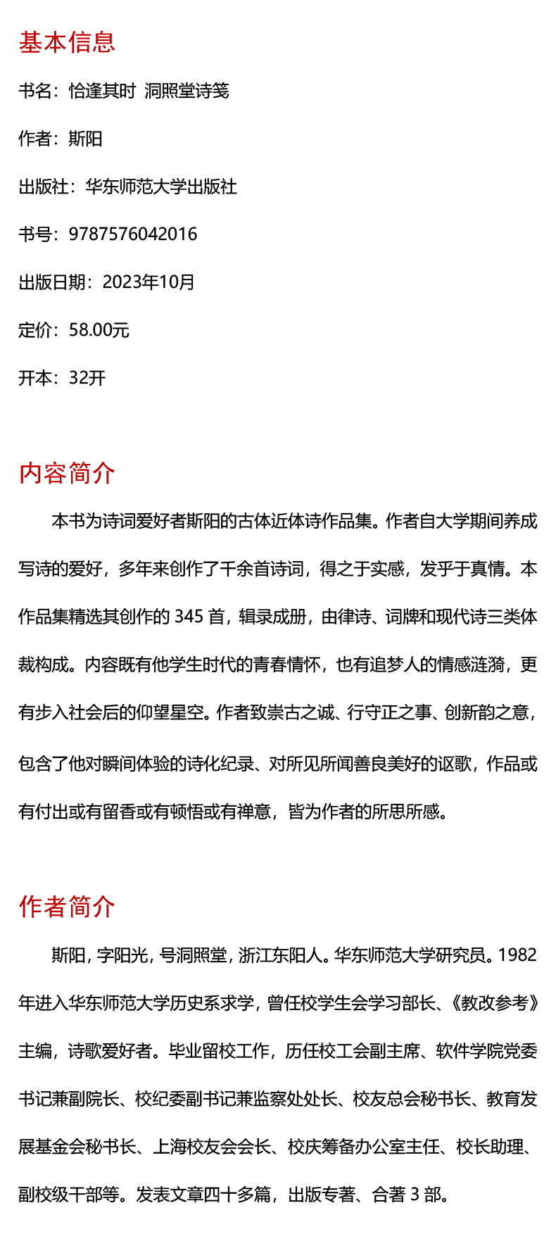 恰逢其时 洞照堂诗笺 古体近体诗作品集 斯阳著