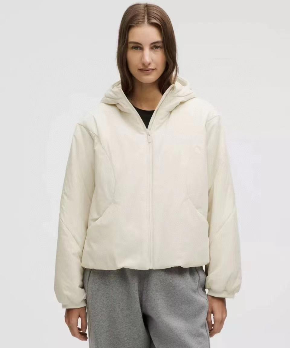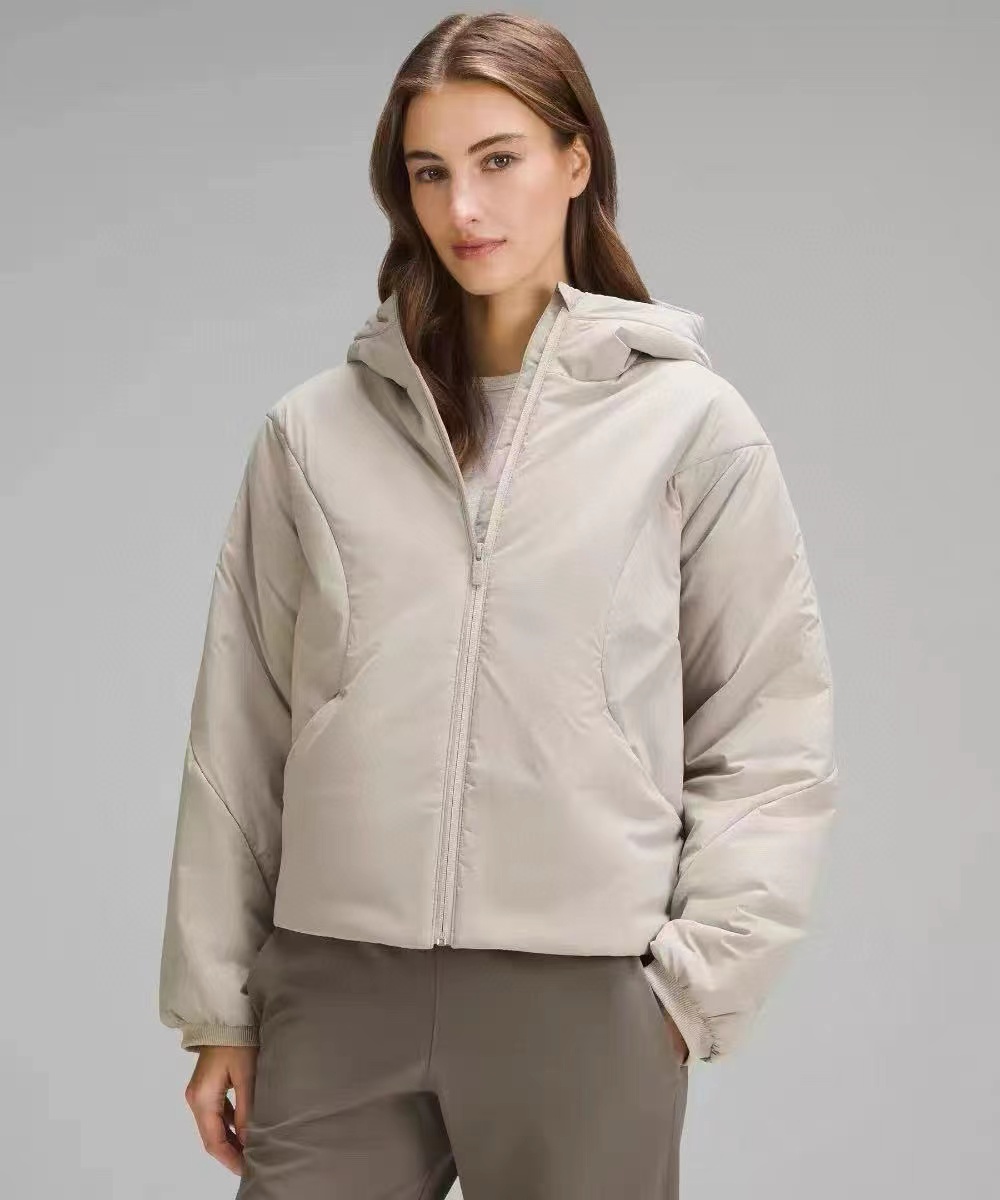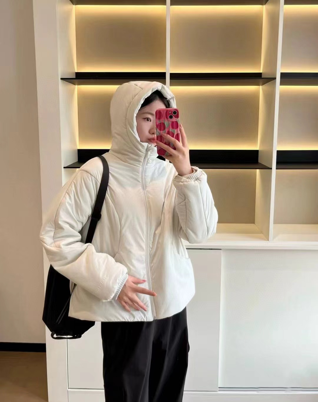 Water-Resistant女士连帽外套棉服。使用环保再生尼龙面料。填充客供Primaloft绝缘保暖材料,即使在潮湿时也可以使身体保持温暖。,带隐藏手机袖的拉链手袋,抽绳可调节下摆,防风保暖。上身超显肤色和显瘦,上身好看到破防!搭配也无烦恼! 搭什么都很洋气好看.整件像小面包一样.软软暖暖的~中性冷淡风的颜色真真清爽请不要客气大胆盘它就对了!