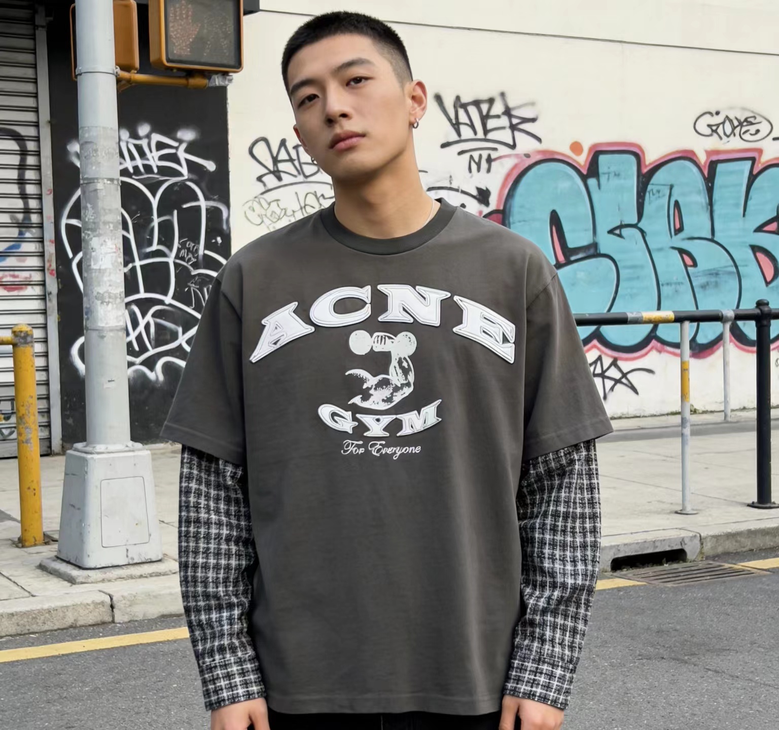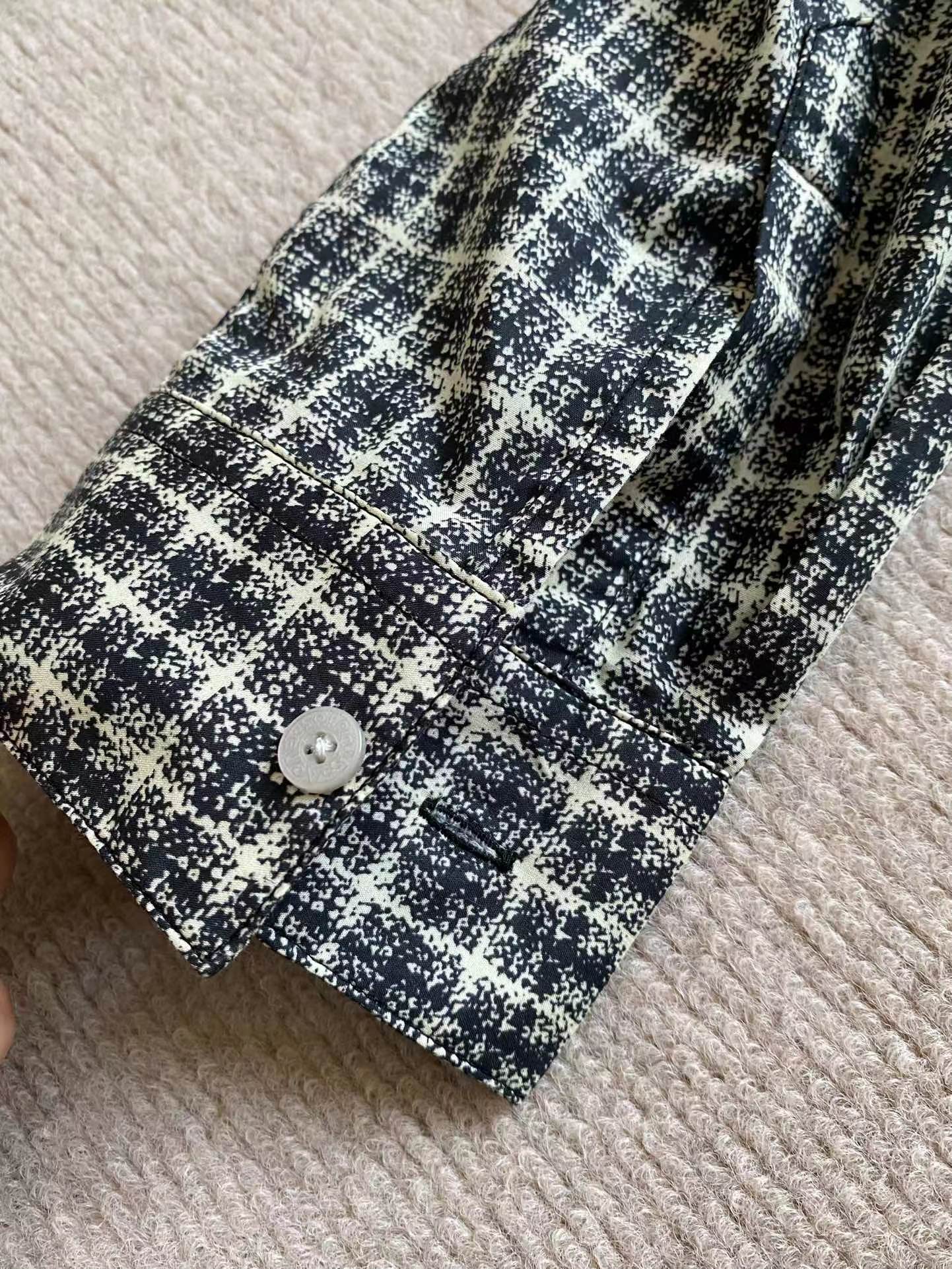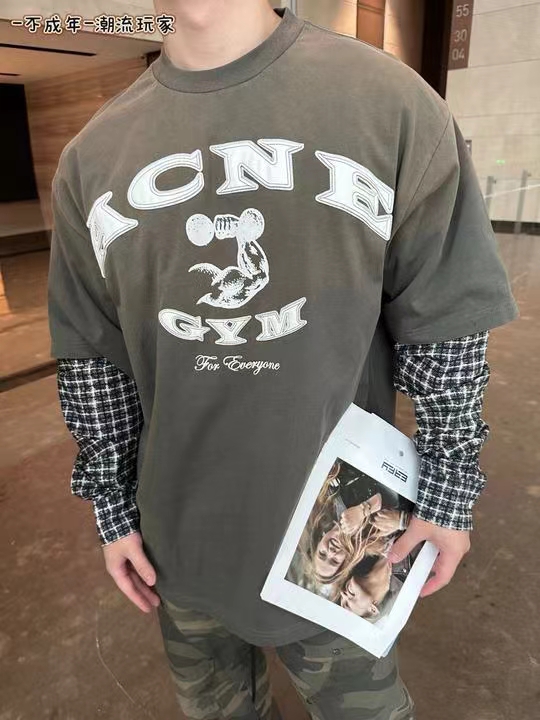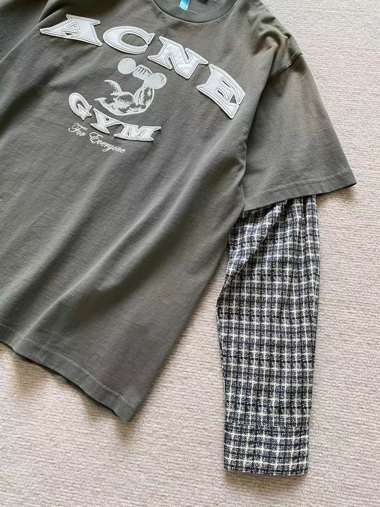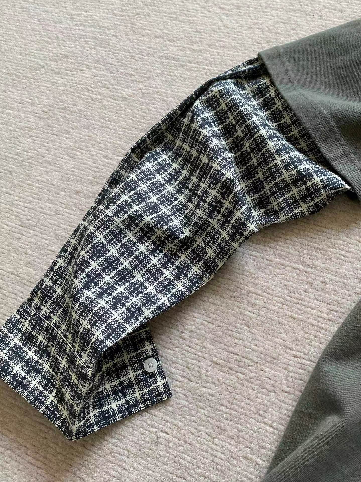 鹿晗同款 美式街头贴皮刺绣 经水洗假两件长袖T恤,面料解析:16支245g全面精梳棉汗布水洗后仍高达270g克左右。假长袖部分采用 数码打印衬衫袖 为60支高密度小棉布胚布数码直喷 做到衬衫效果 领口螺纹为成一一体面染色水洗而出。辅料解析:纽扣都是定做衬衫扣 洗标辅料全部重新开模 成衣喷马骝 做旧水洗 贴皮刺绣 再过一遍硅油柔软洗 整体复古做旧质感拉满!夯爆了质感特别好,版型正。不是外面的垃圾货。整体偏美式,对身材的包容性和搭配性更强。可打底单穿都轻松拿捏。