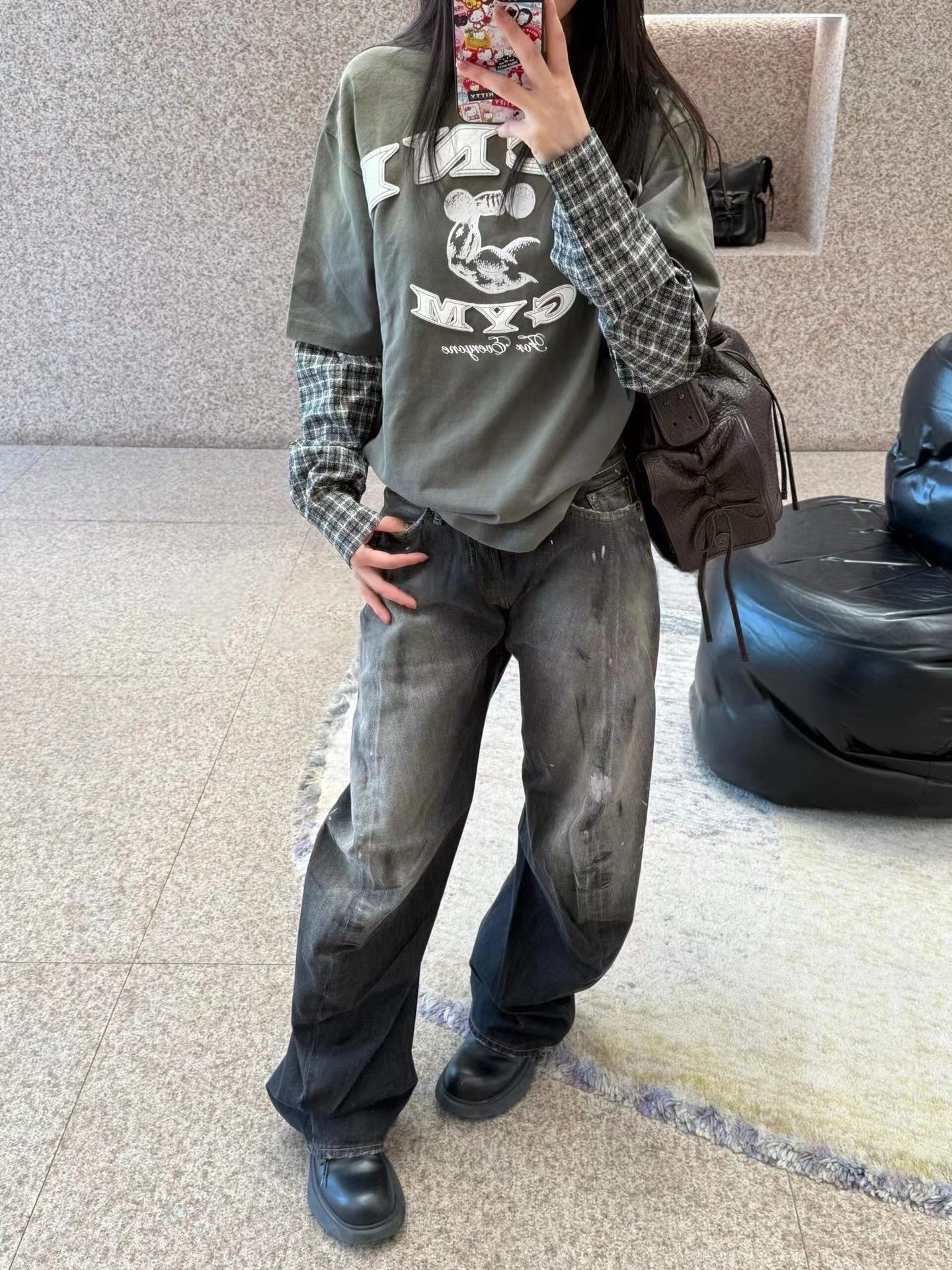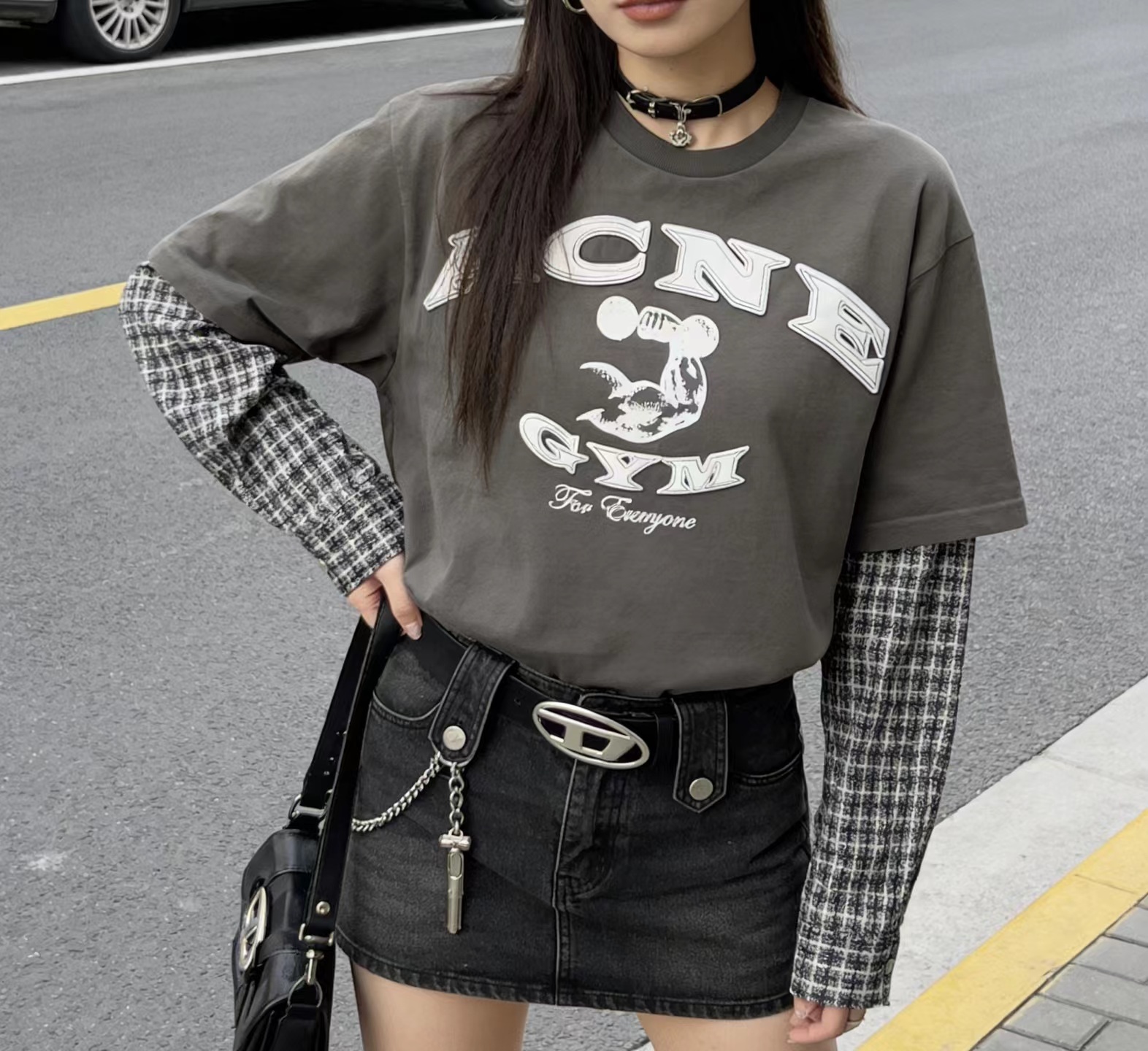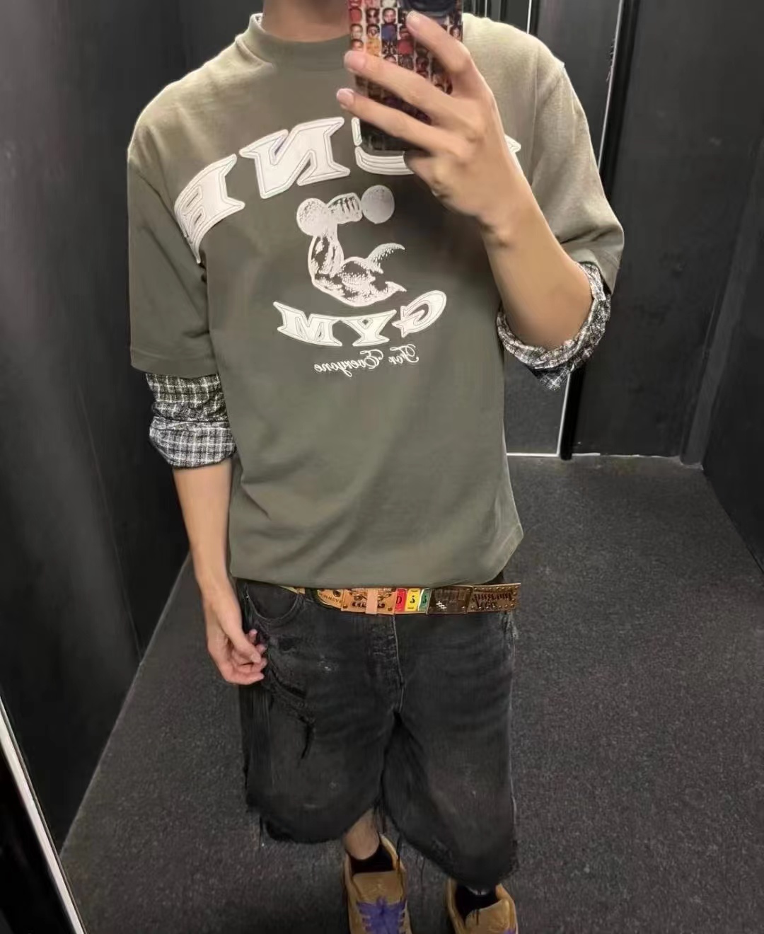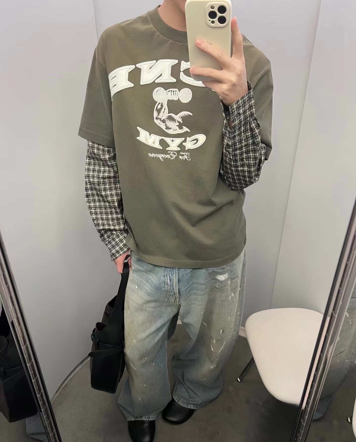 鹿晗同款 美式街头贴皮刺绣 经水洗假两件长袖T恤,面料解析:16支245g全面精梳棉汗布水洗后仍高达270g克左右。假长袖部分采用 数码打印衬衫袖 为60支高密度小棉布胚布数码直喷 做到衬衫效果 领口螺纹为成一一体面染色水洗而出。辅料解析:纽扣都是定做衬衫扣 洗标辅料全部重新开模 成衣喷马骝 做旧水洗 贴皮刺绣 再过一遍硅油柔软洗 整体复古做旧质感拉满!夯爆了质感特别好,版型正。不是外面的垃圾货。整体偏美式,对身材的包容性和搭配性更强。可打底单穿都轻松拿捏。