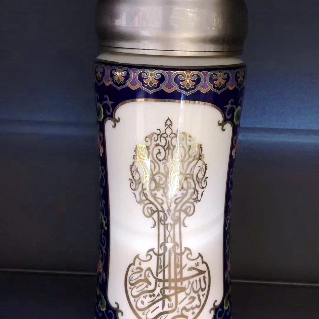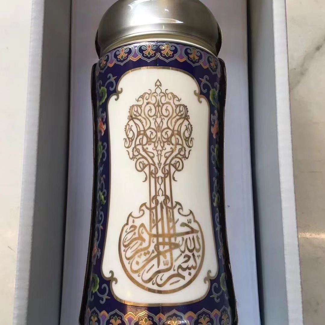 高档骨瓷穆斯林水杯回族人民族风礼品杯子 哈德曼特色用品双层仿景泰蓝复古陶瓷杯 礼盒杯子