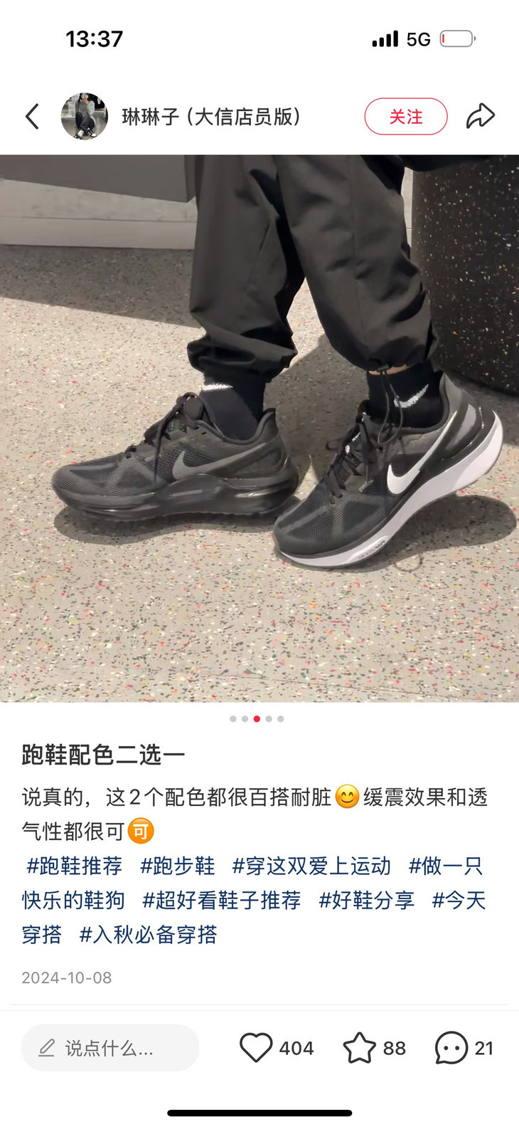 不愧是Nike的王牌系列,这款鞋够快、够稳、够软弹!作为慢跑之王,它带来的能量反馈非常出色。内嵌独立的中足支撑系统,提供额外的足弓支撑,再加上后跟外露式环抱TPU的加持,不仅保护脚踝,还能带来一种助推力。