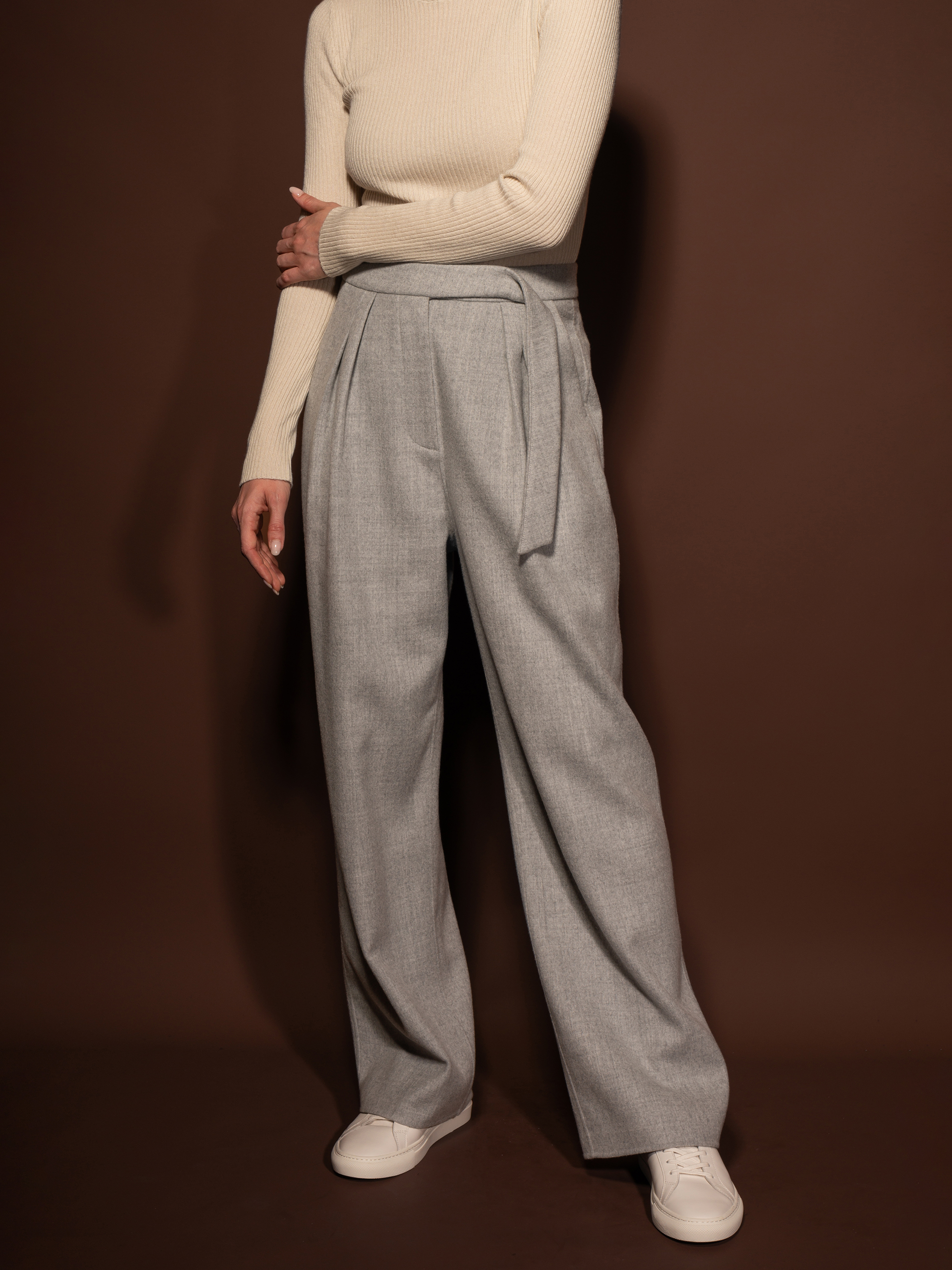 Puree|#1221 Belted pants 羊绒羊毛双面绒腰带打褶长裤 [ 浅蓝 / 浅驼 / 浅灰 ]