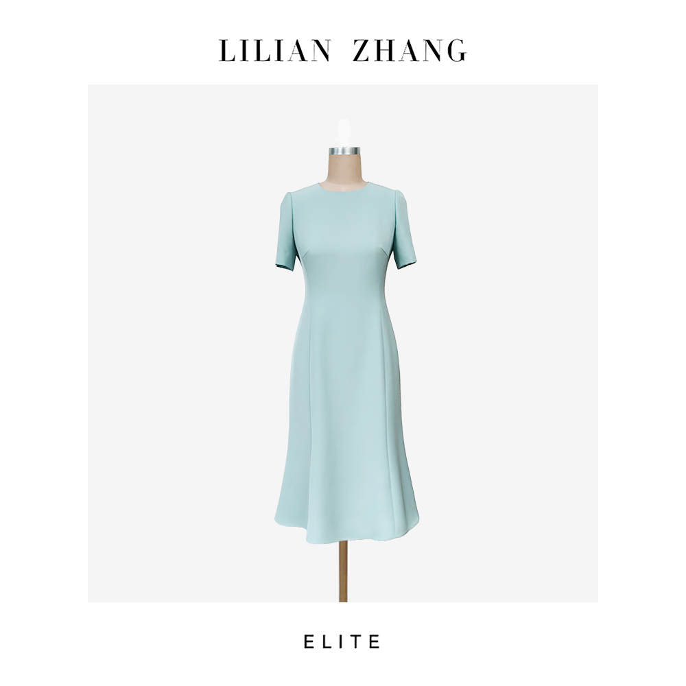 定制—静奢风—香榭雅定—法式优雅圆领短袖鱼尾收腰连衣裙 2501053