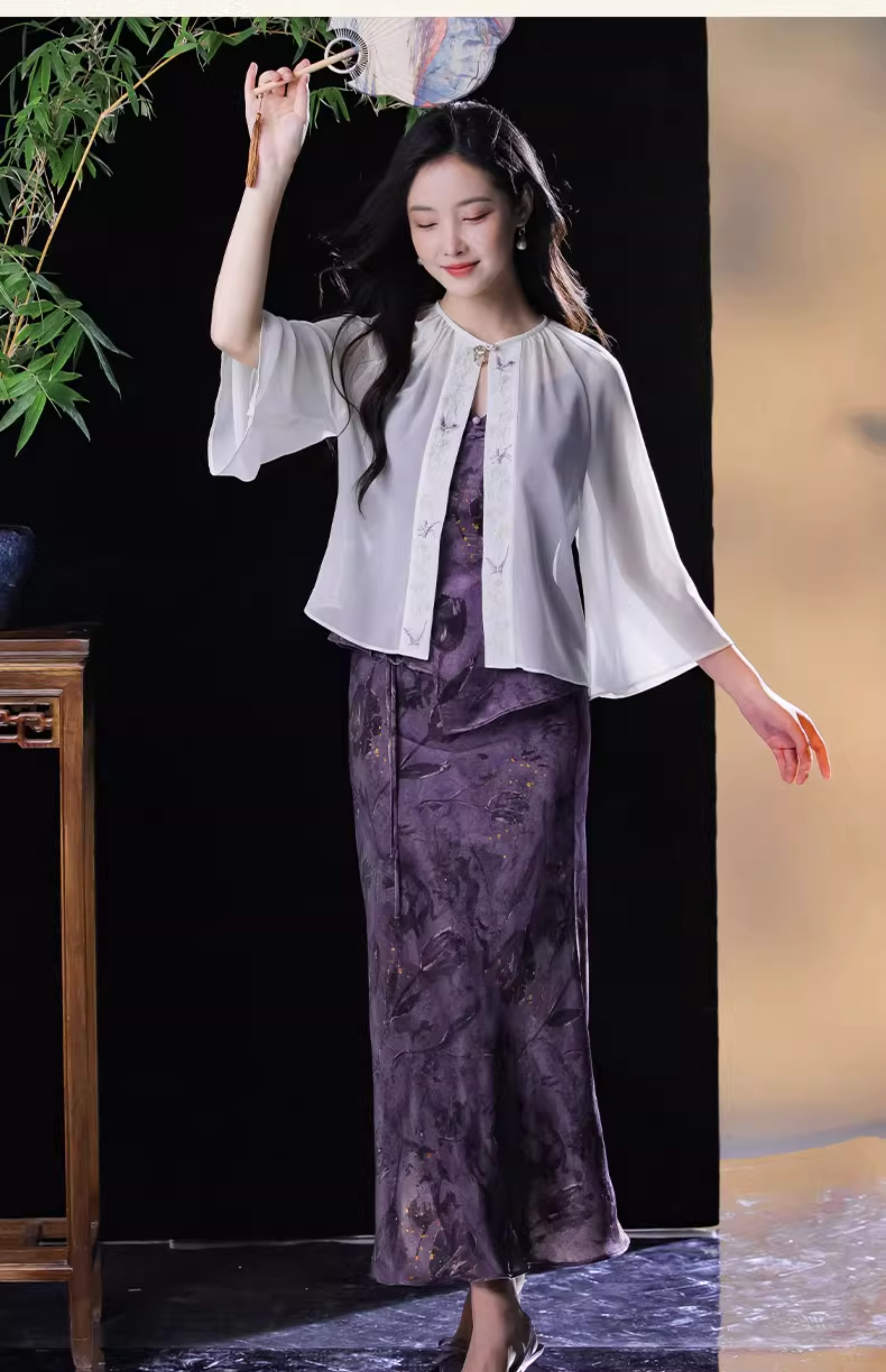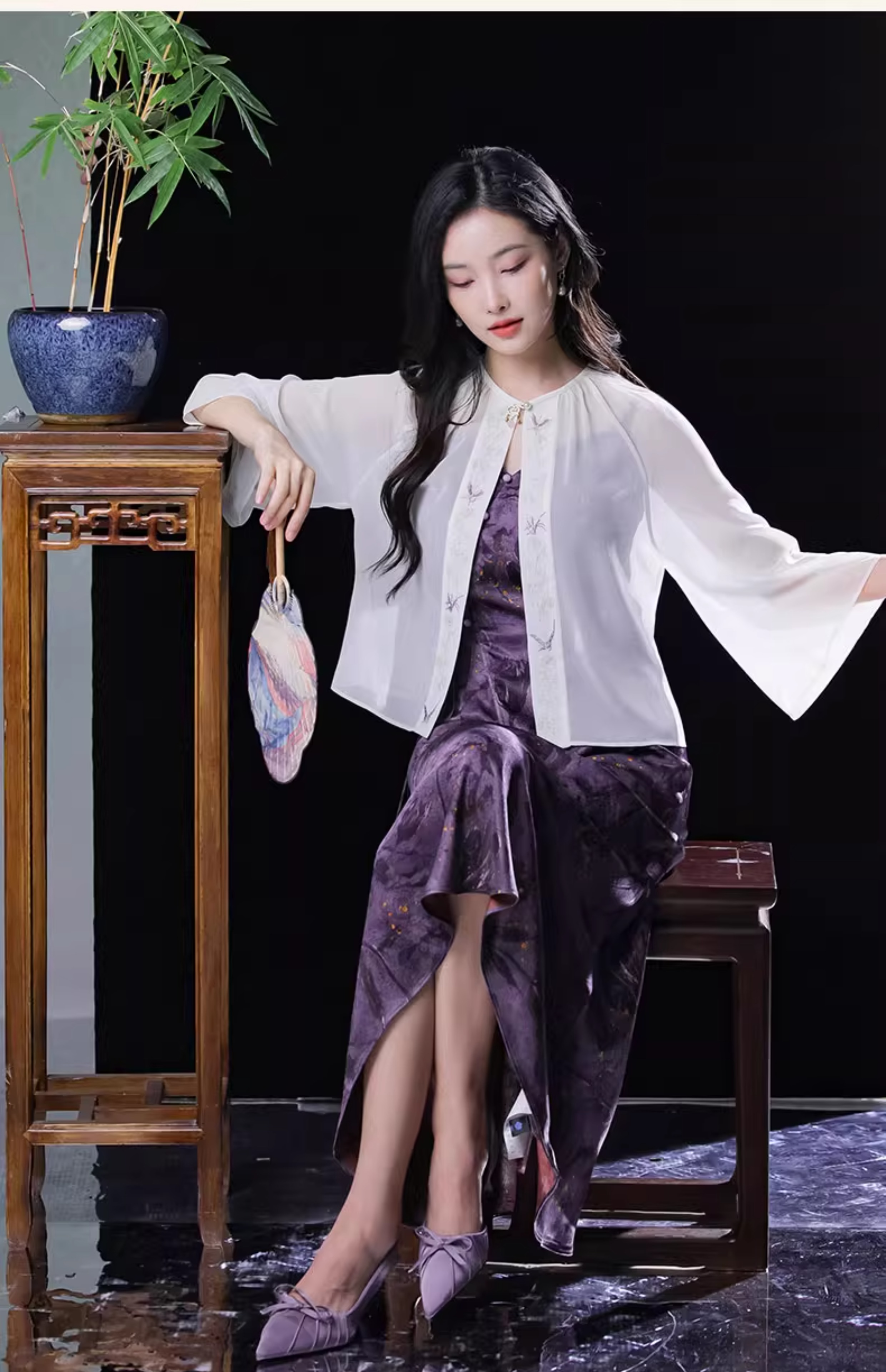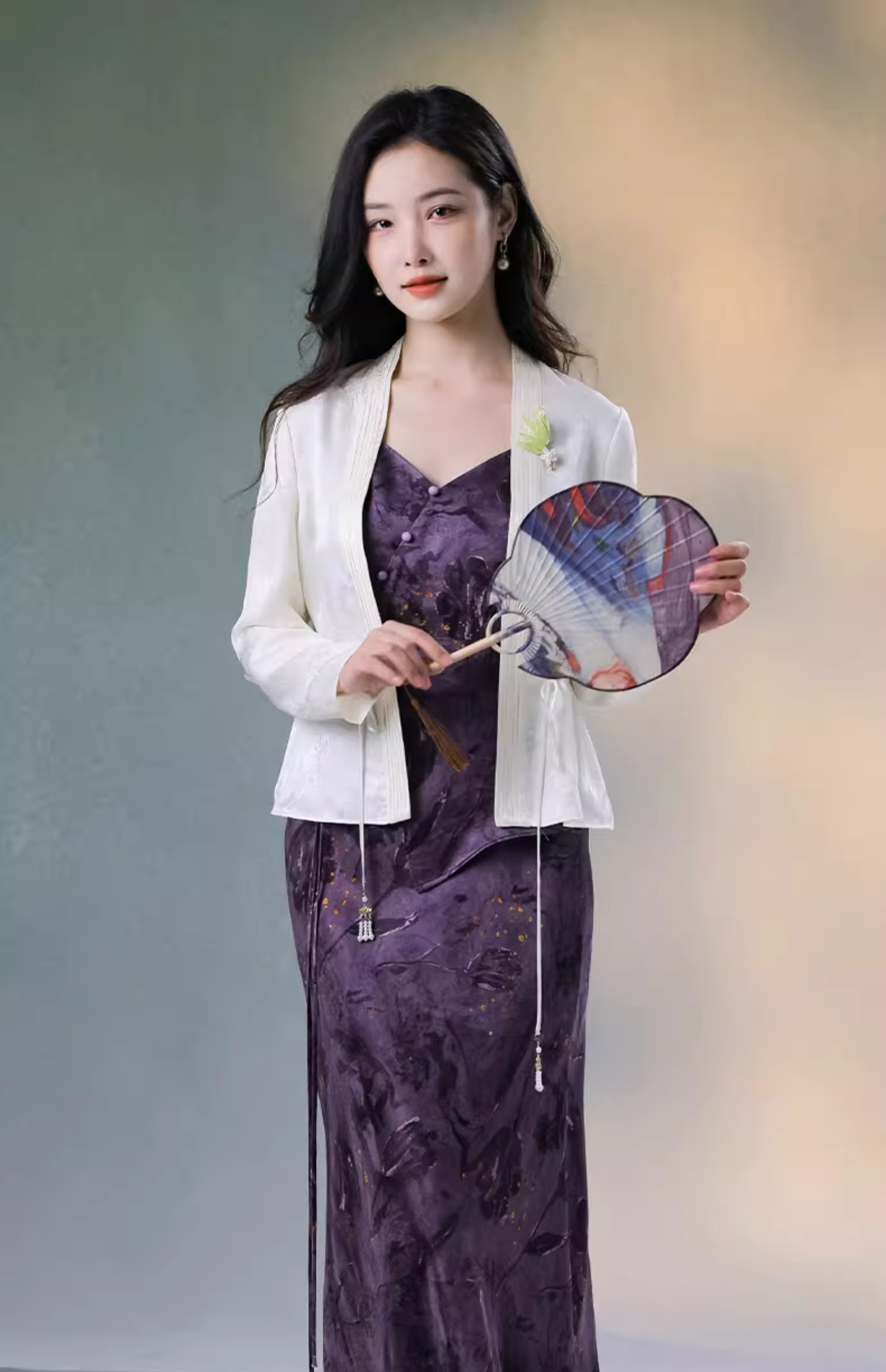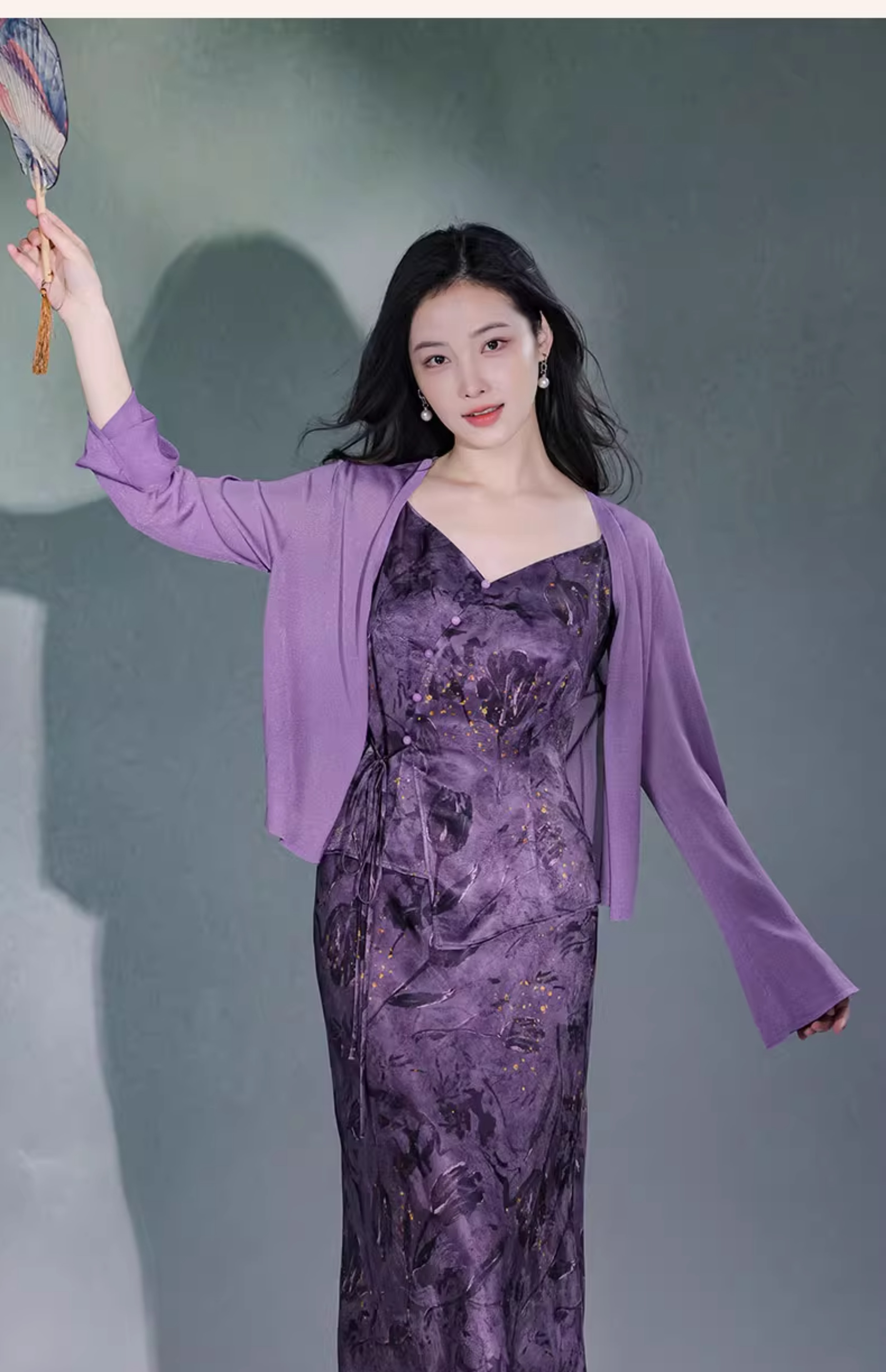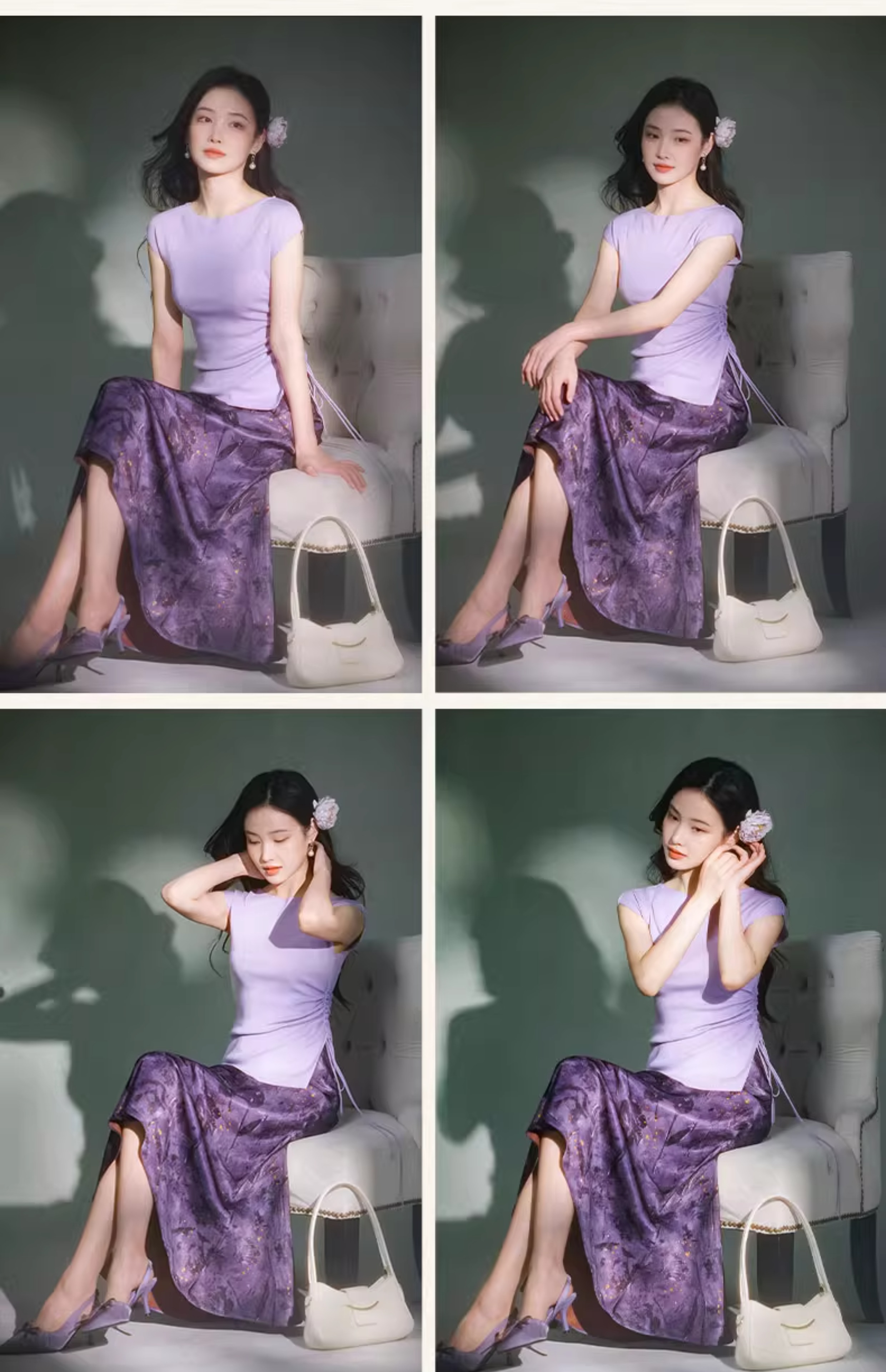 逸红颜紫姝2025夏新款冰感过莨工艺人丝松紧腰斜裁鱼尾半裙长裙女