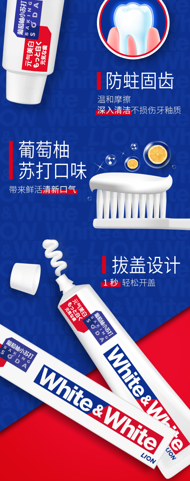【超值4支装】日本狮王LION葡萄柚小苏打牙膏120g/支 对抗龋齿、洁牙固齿、减少牙菌斑、呵护口腔问题!