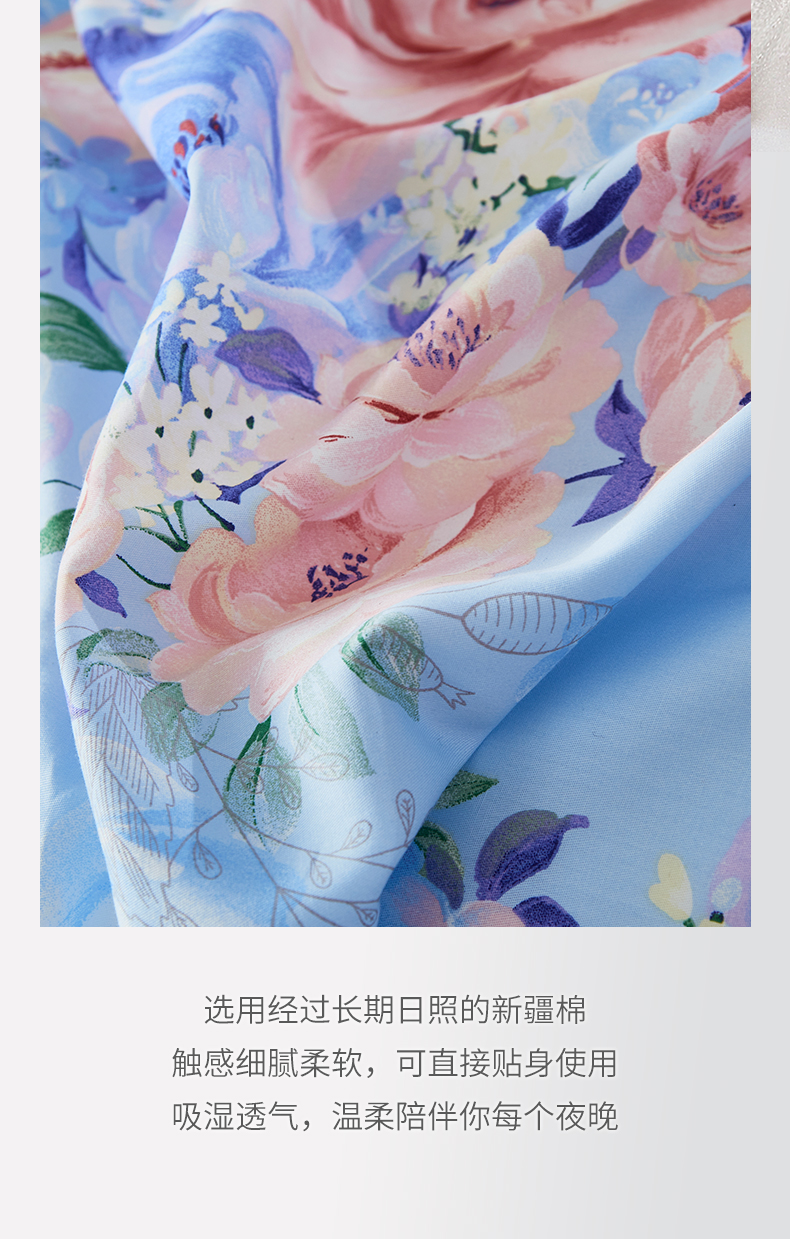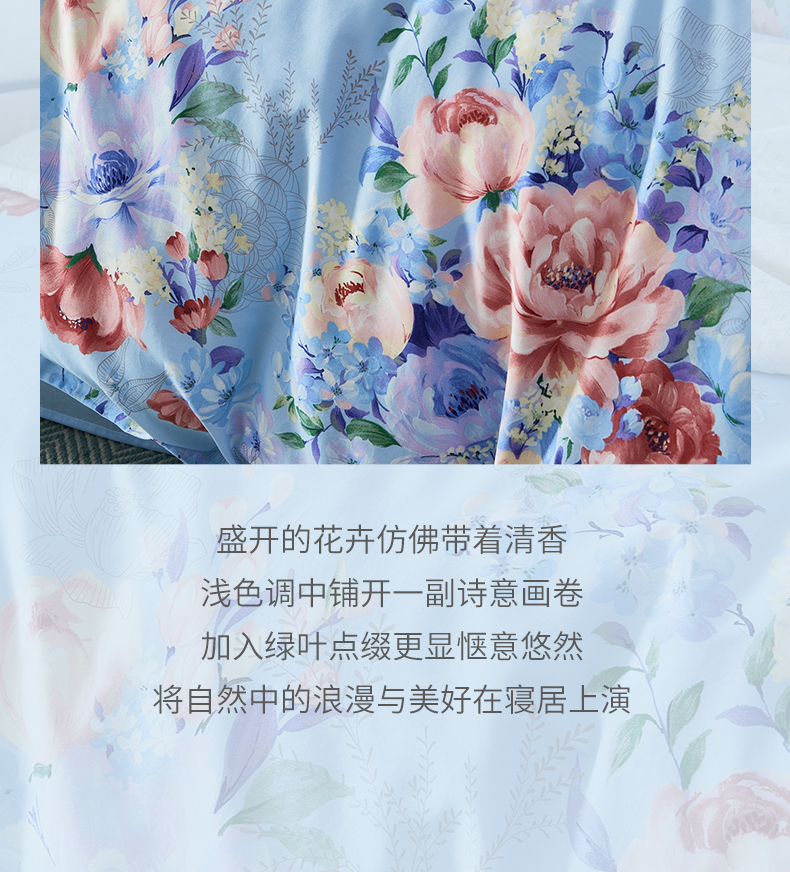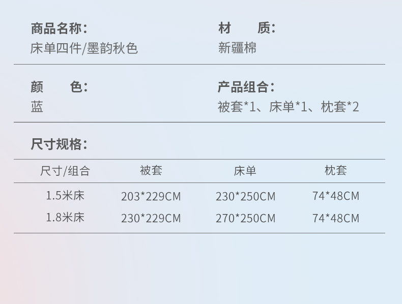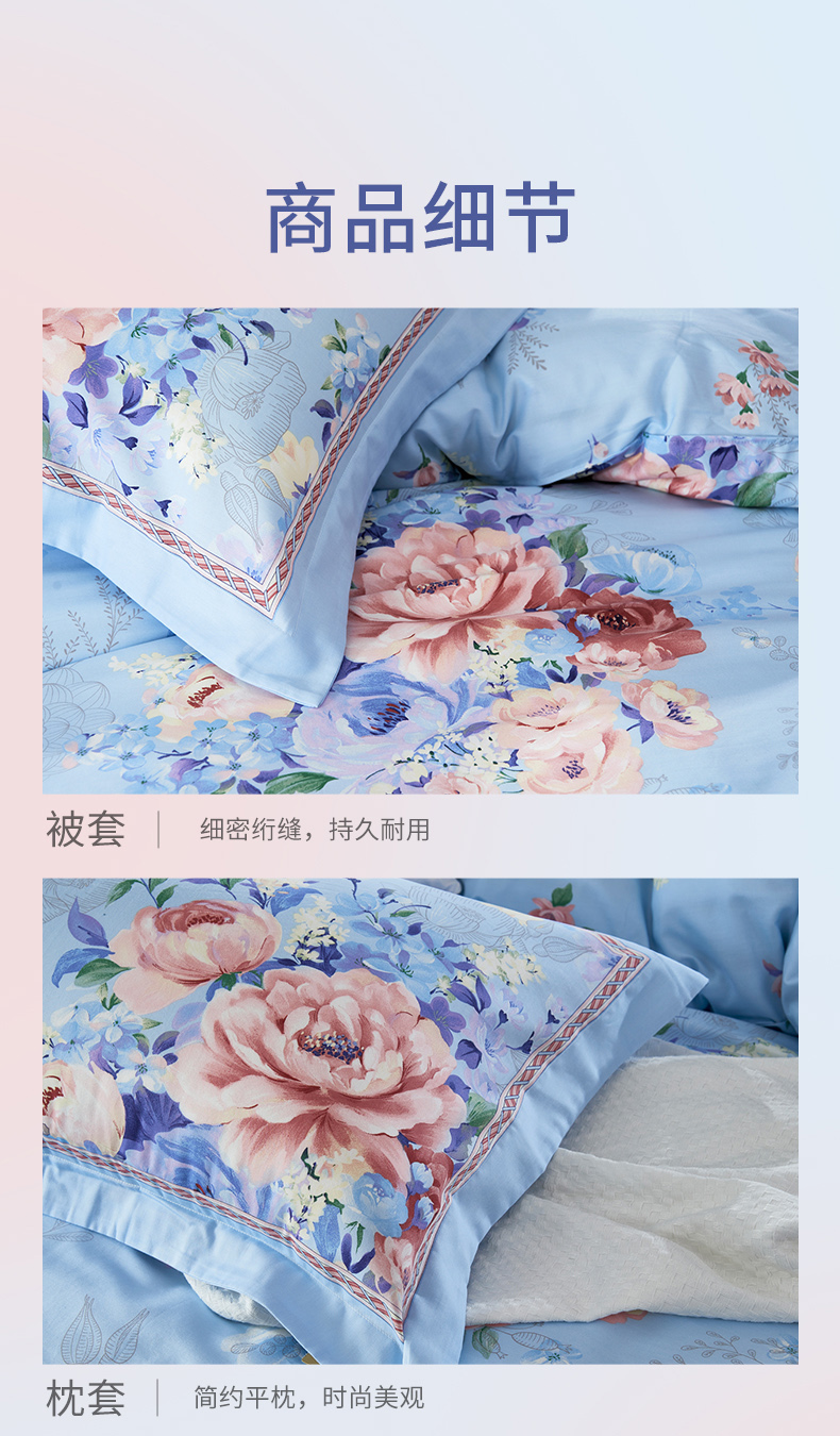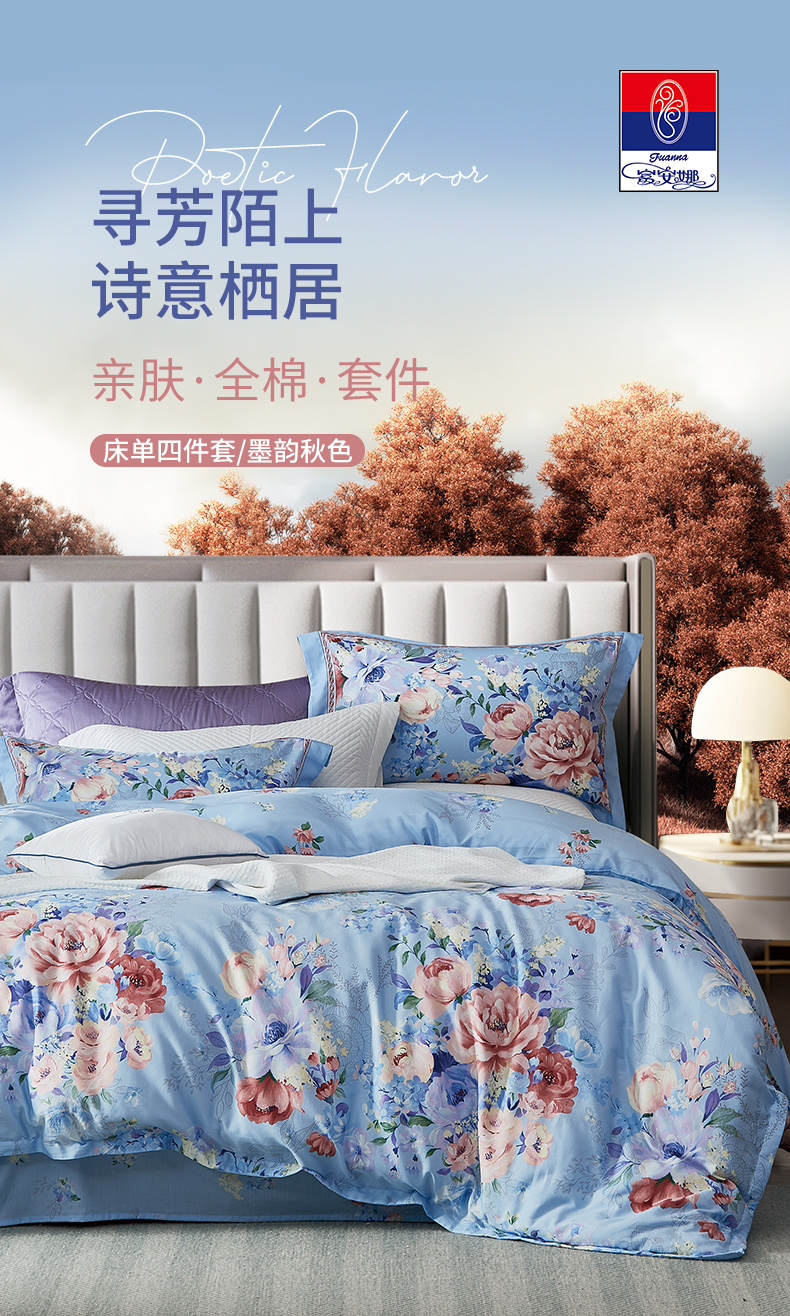 【6F】富安娜床单四件\墨韵秋色,蓝色,
