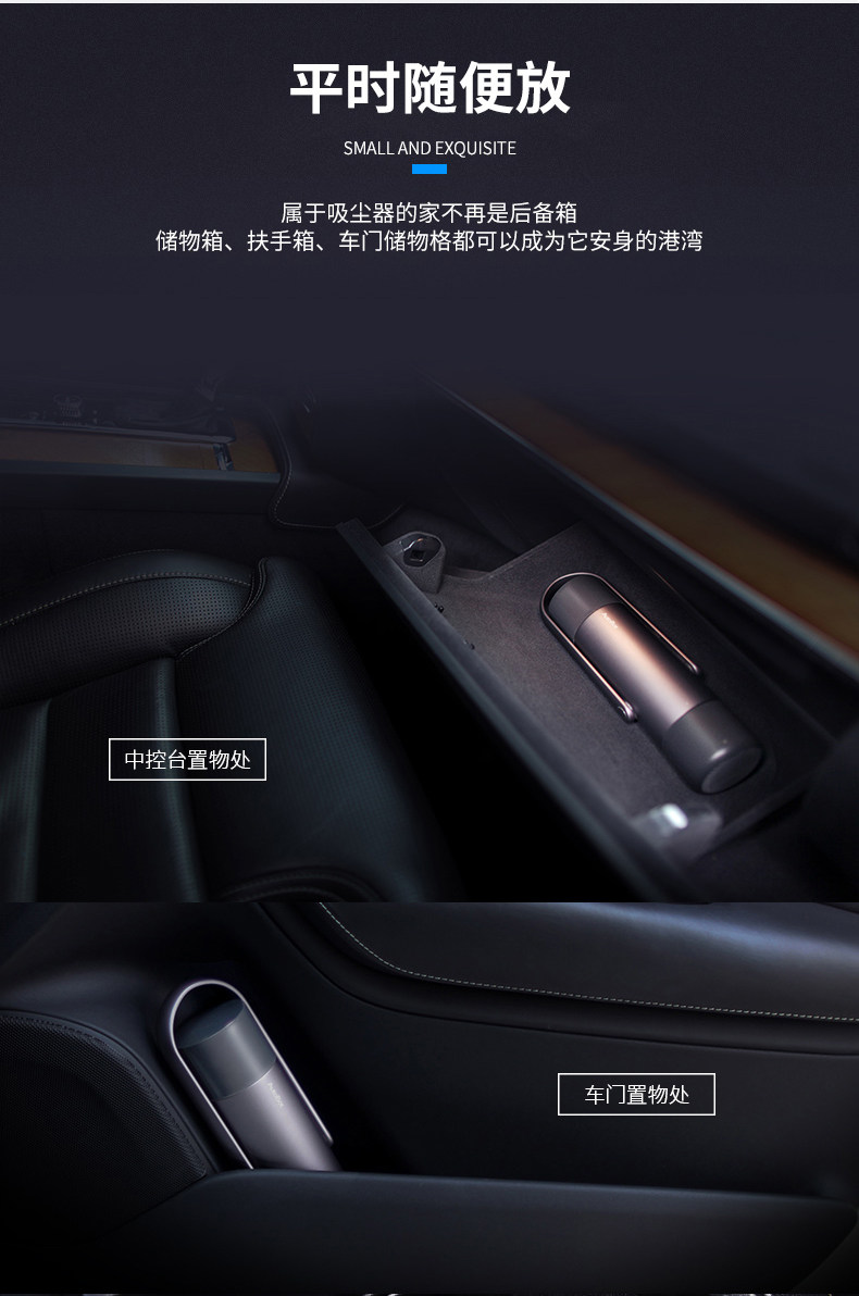 吸尘器的电池仓可以直接拆下来!体积只有茶杯大小。电量不足时,可以直接放在车内插线充电,随时保持满电状态。
