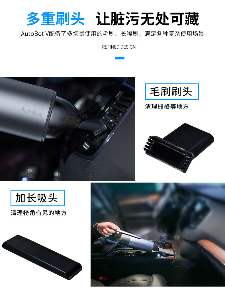 配备的毛刷刷头、加长吸头,都能助你搞定深处垃圾。