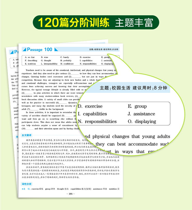 2. 选材与专四真题同源,覆盖各类体裁,难度与真题保持一致,增强实战感;