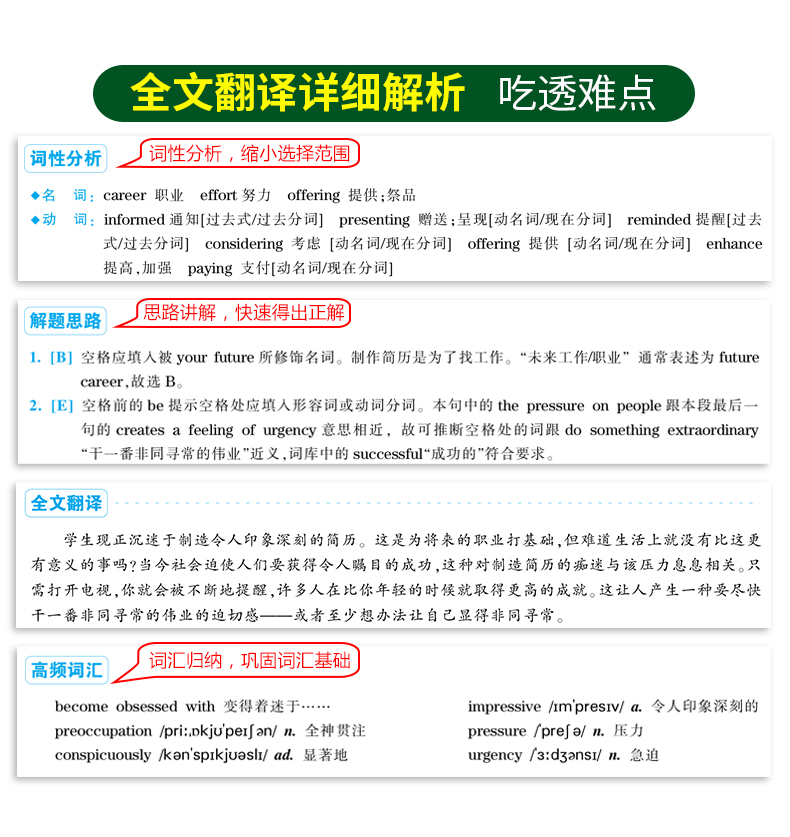 3. 解析详细,提供全文翻译和逐题详解,帮助考生吃透题目,点拨解题思路;