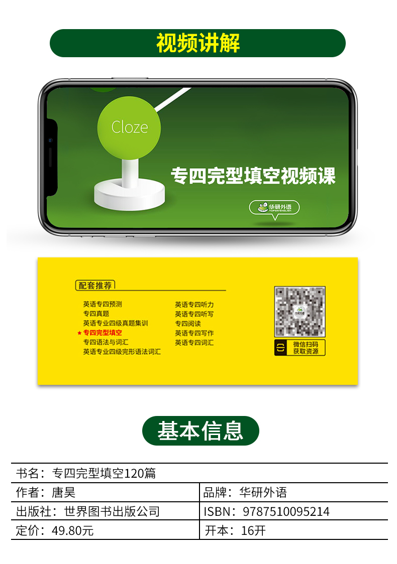 6. 专四完型填空解题技巧视频课(扫封底码或内文码获取)。