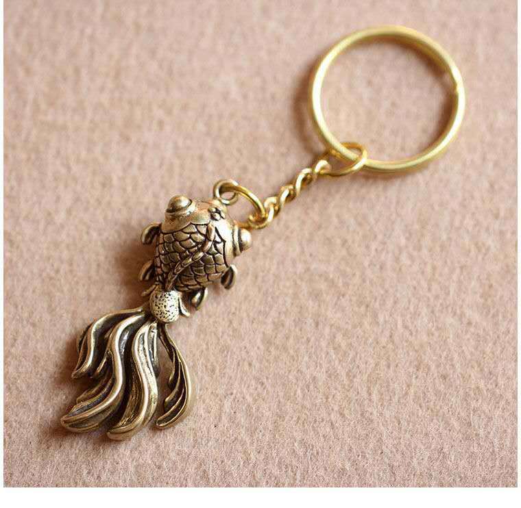 小铜器金鱼年年有余钥匙扣饰品吊坠保平安男女高档汽车钥匙链挂件