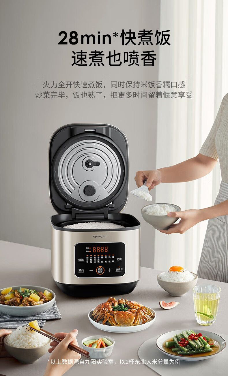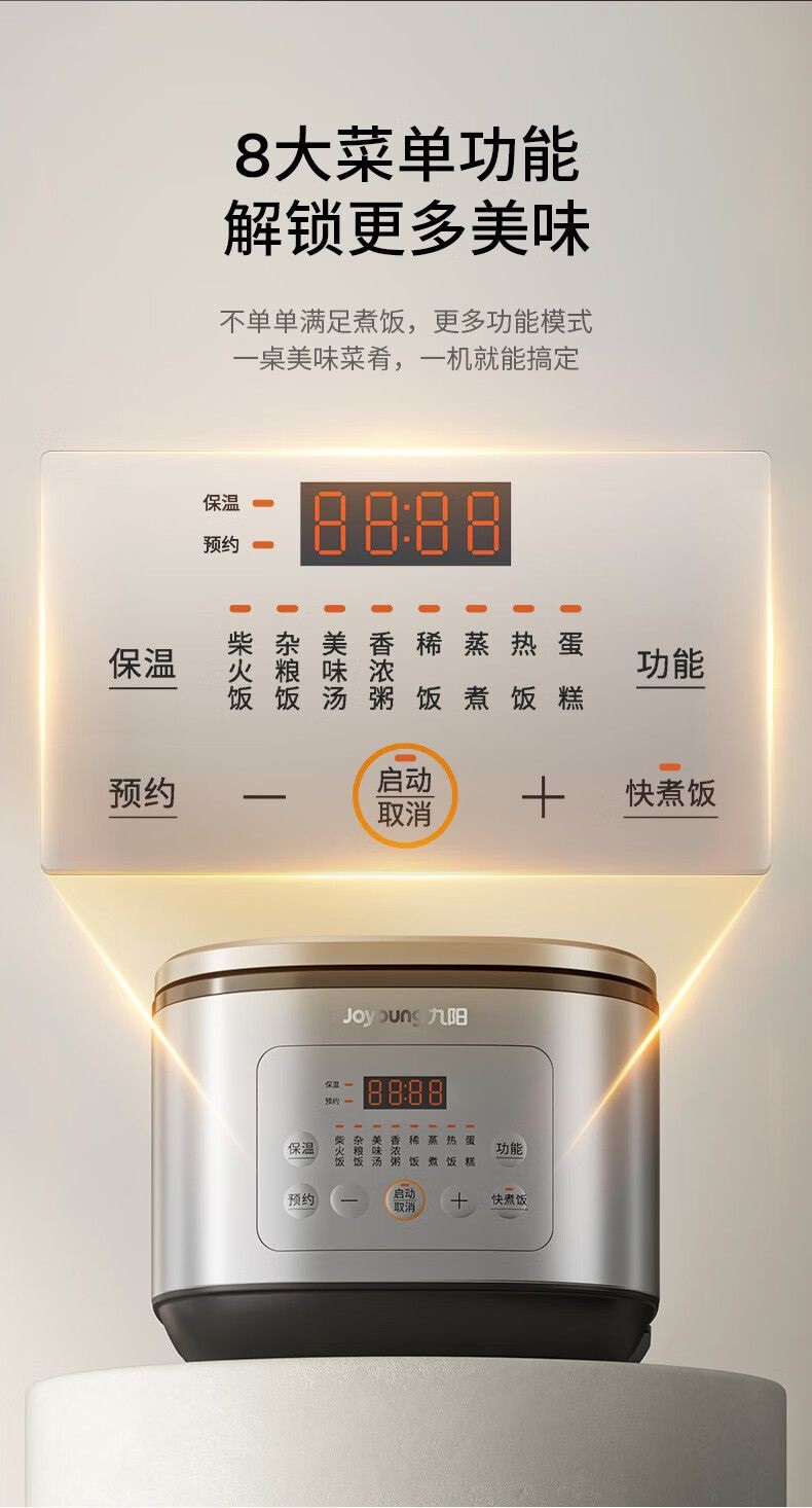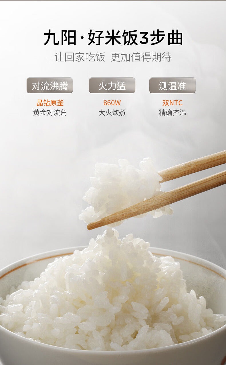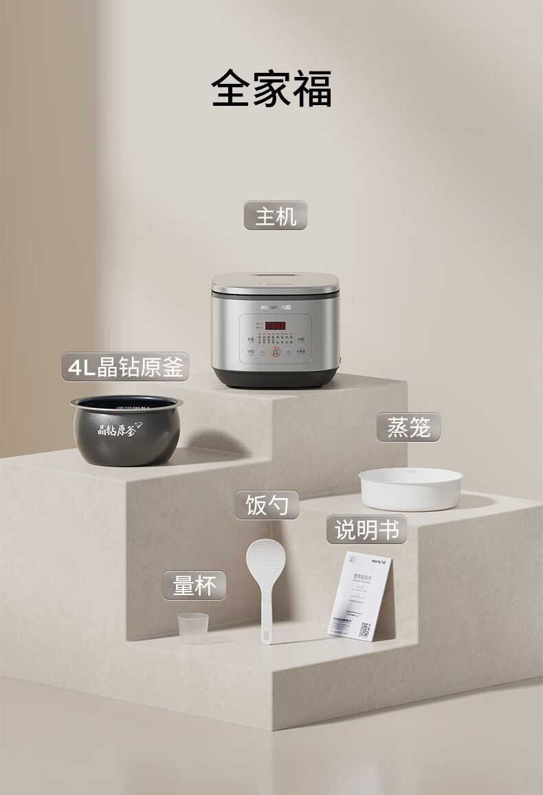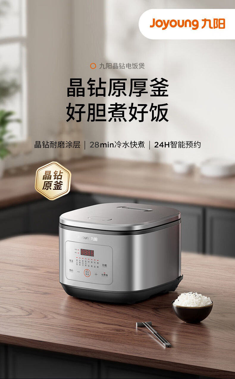 九阳电饭煲4升晶钻原釜五段加热30min快煮饭智能预约多功能电饭锅