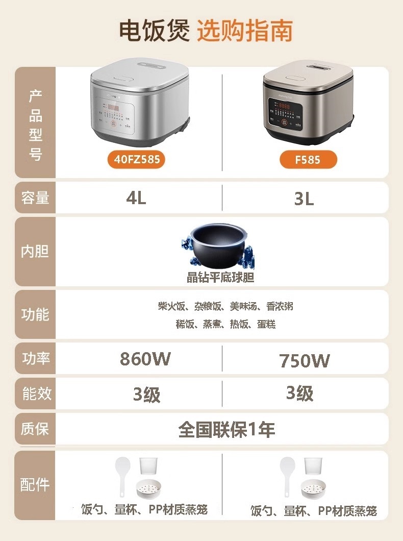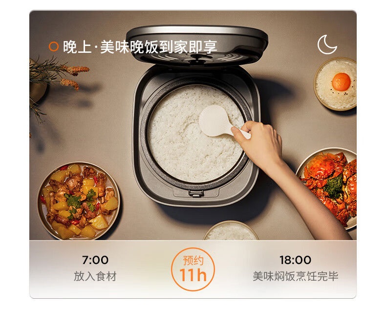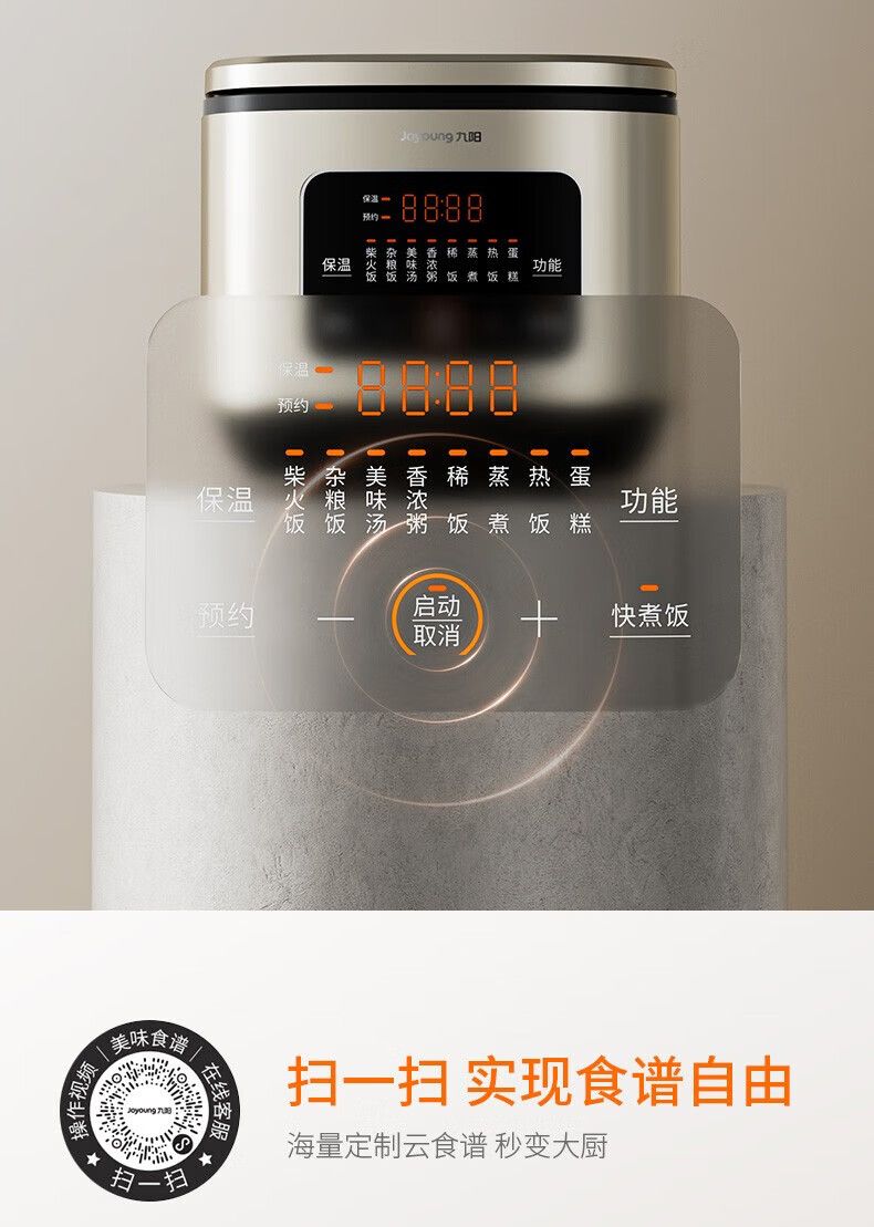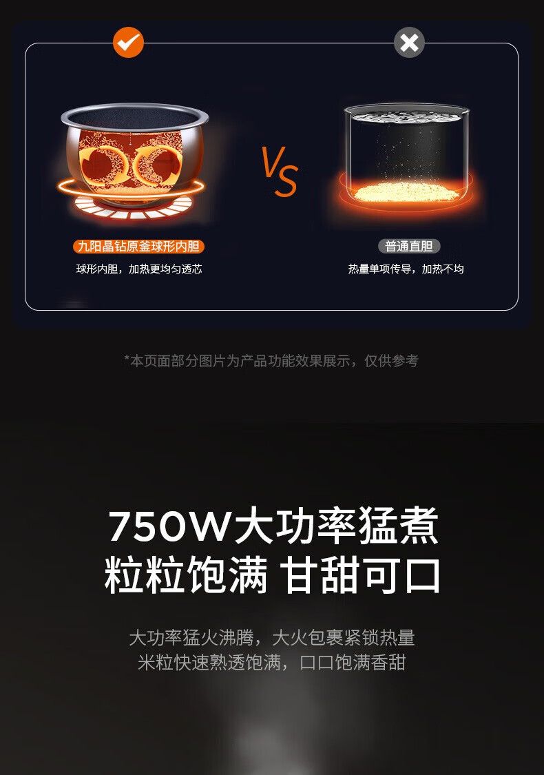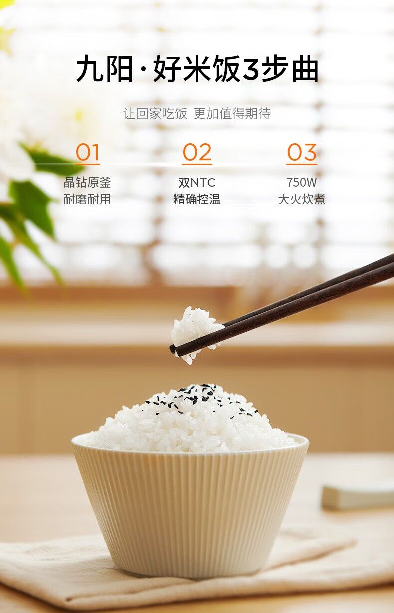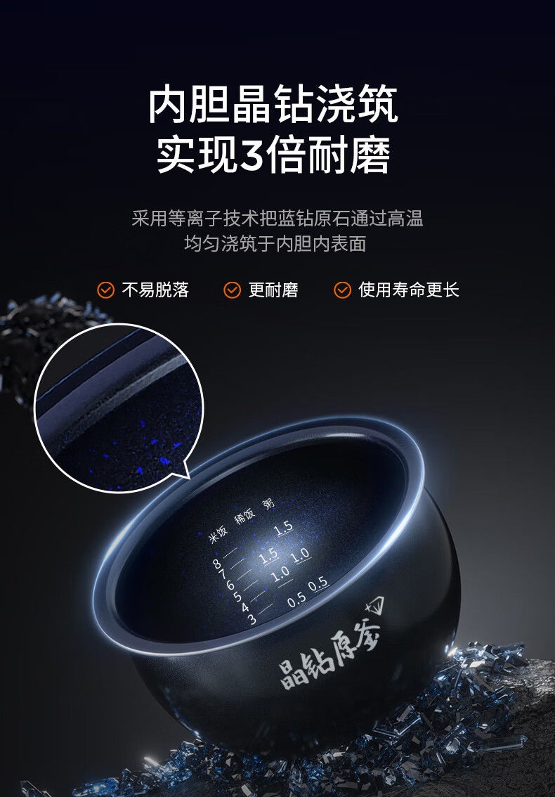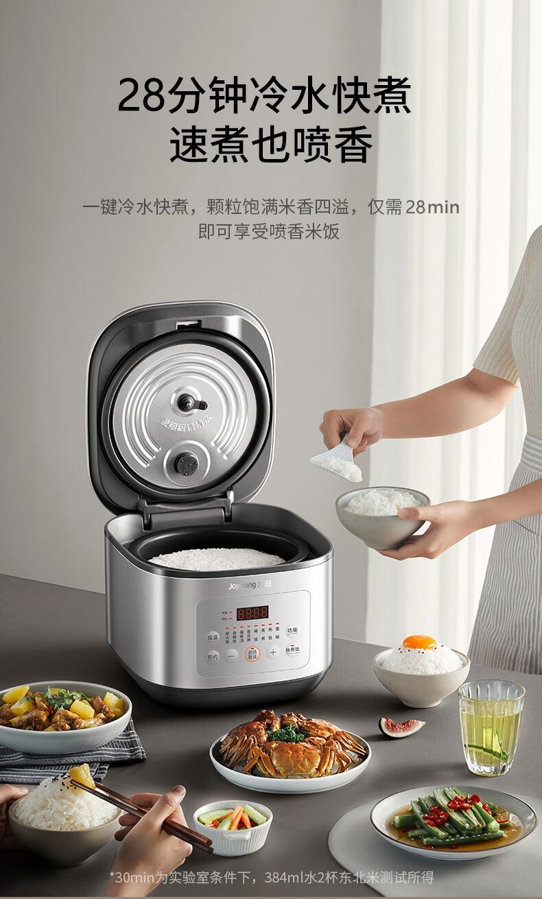 九阳电饭煲4升晶钻原釜五段加热30min快煮饭智能预约多功能电饭锅