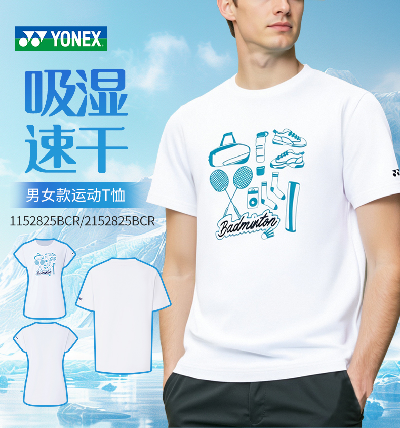 YONEX尤尼克斯羽毛球服新款短袖1152825BCR 2152825BCR男女款透气速干短袖
