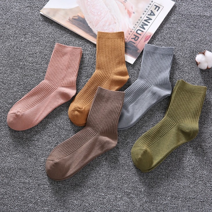 袜子男女秋冬 日系条纹精梳棉男女袜 新品长筒双针松口棉袜