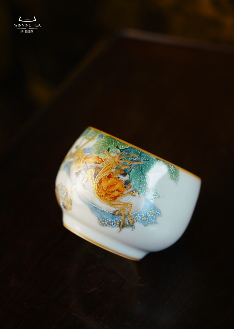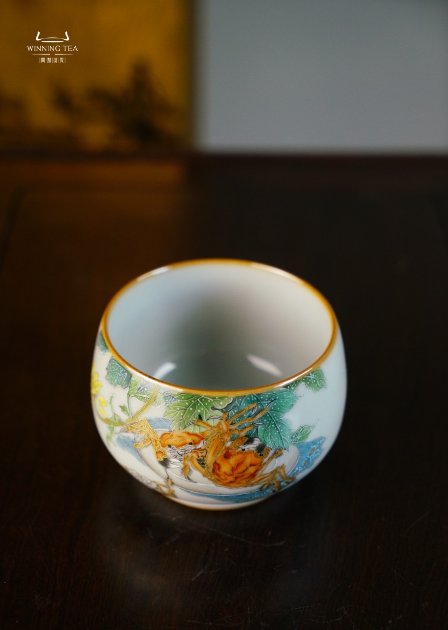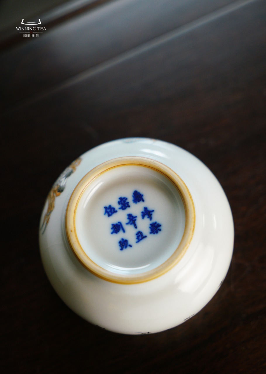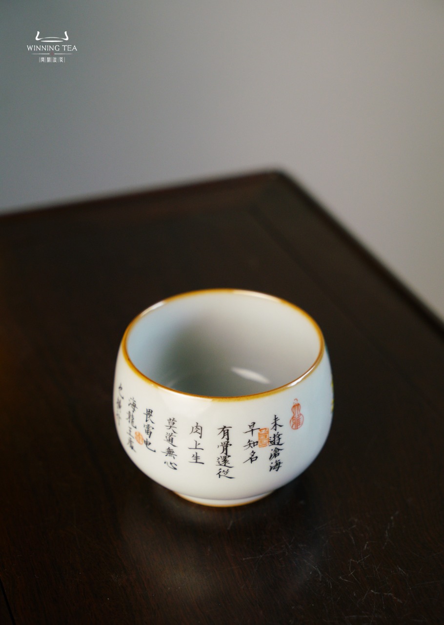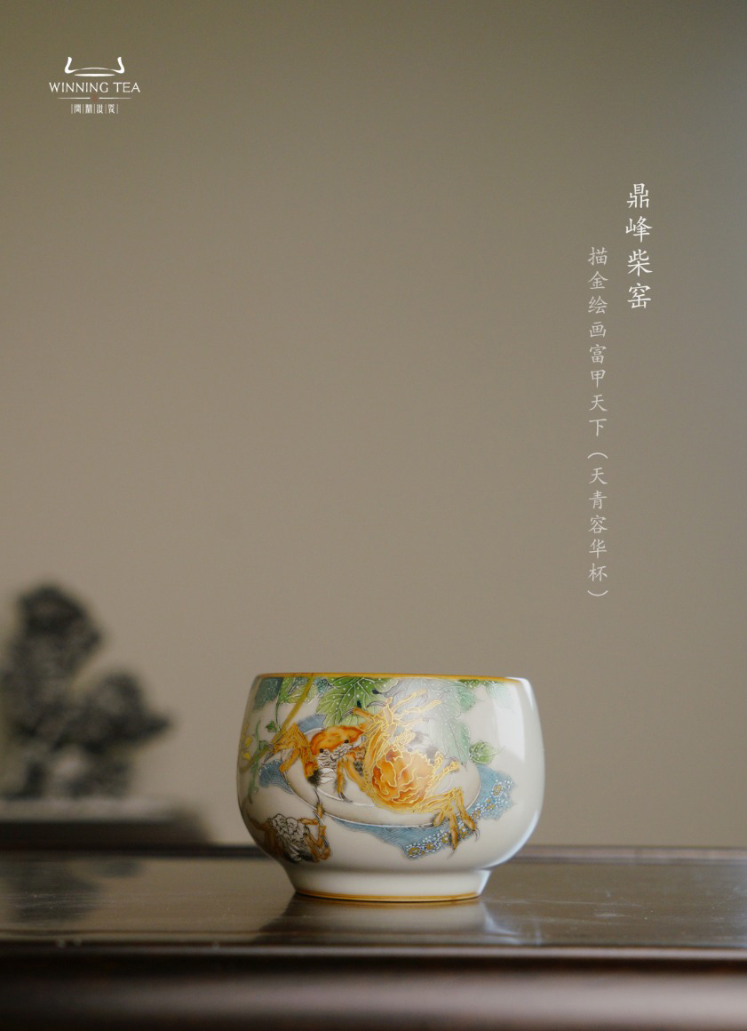问鼎汝瓷鼎峰柴窑天青容华杯(描金绘画富甲天下)(缺货)