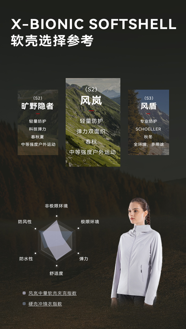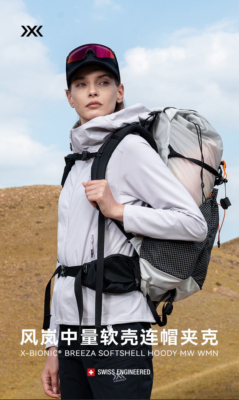X-BIONIC风岚中量软壳连帽夹克女(S2) 秋冬户外耐磨防泼水软壳衣 24880