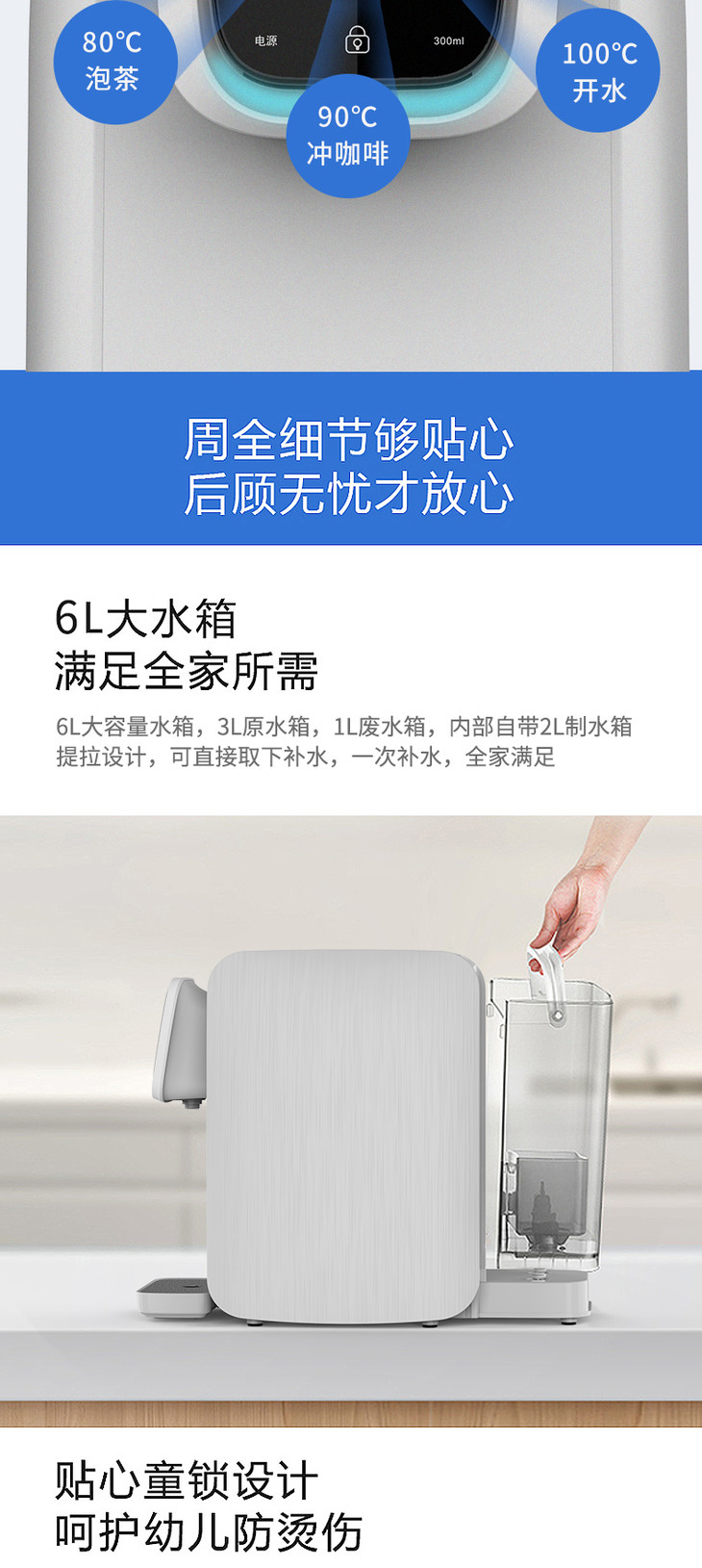 特洁恩净水器家用台上净饮机W13直饮机 免安装 带加热功能