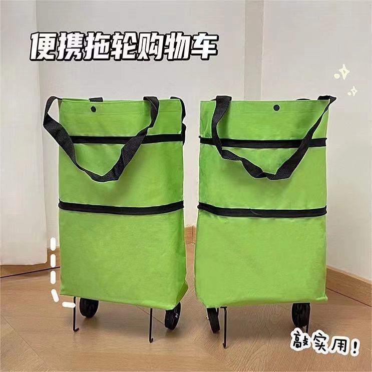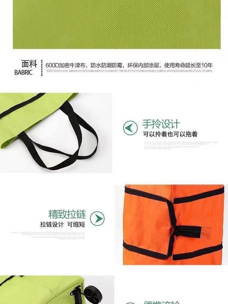 【解放双手小神器!便携拖轮购物车】采用加密牛津布 防水耐脏耐磨,拉链设计可折叠 单肩背或手拉车都不可以,简单方便快捷,折叠便携式轮子手提袋防水超市购物小推车Y