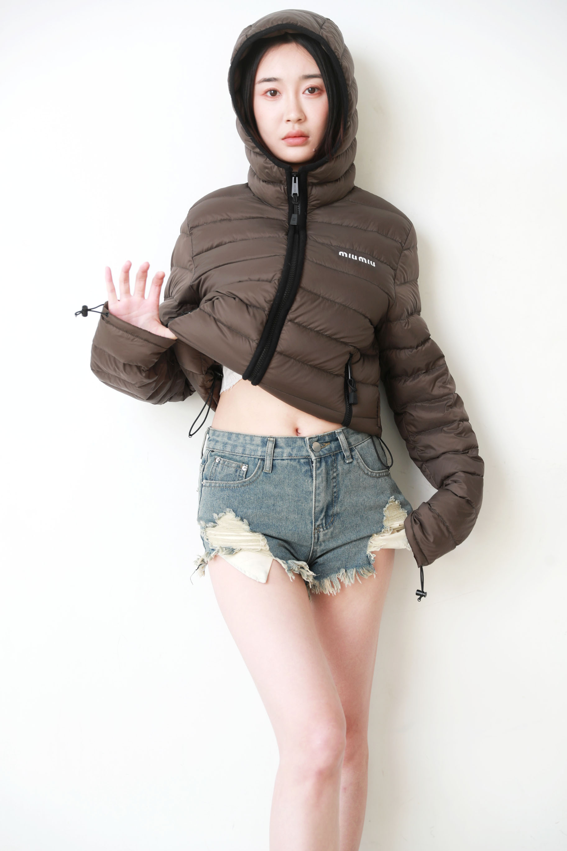 排骨羽绒服,连帽+立领一起。胸口小标衍缝填充式羽绒外套C120968
