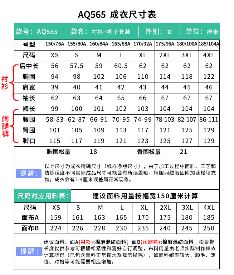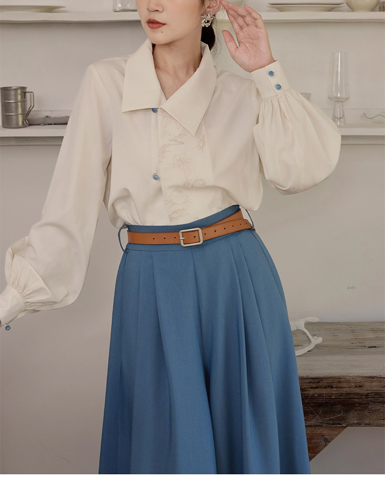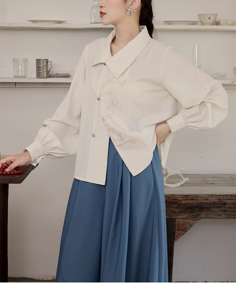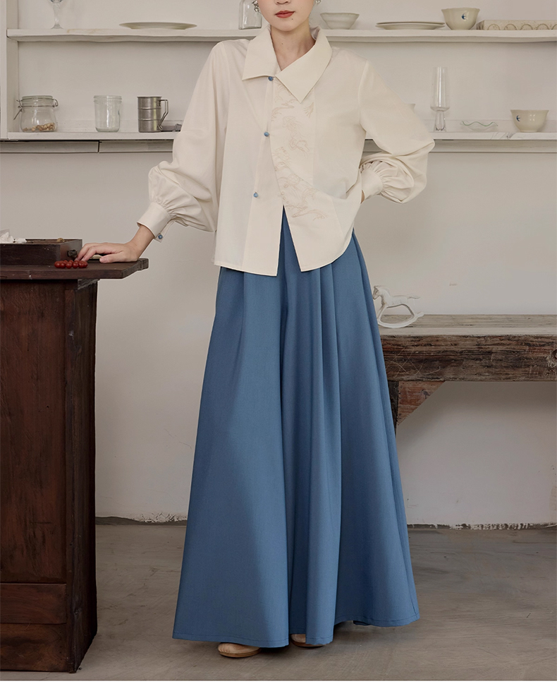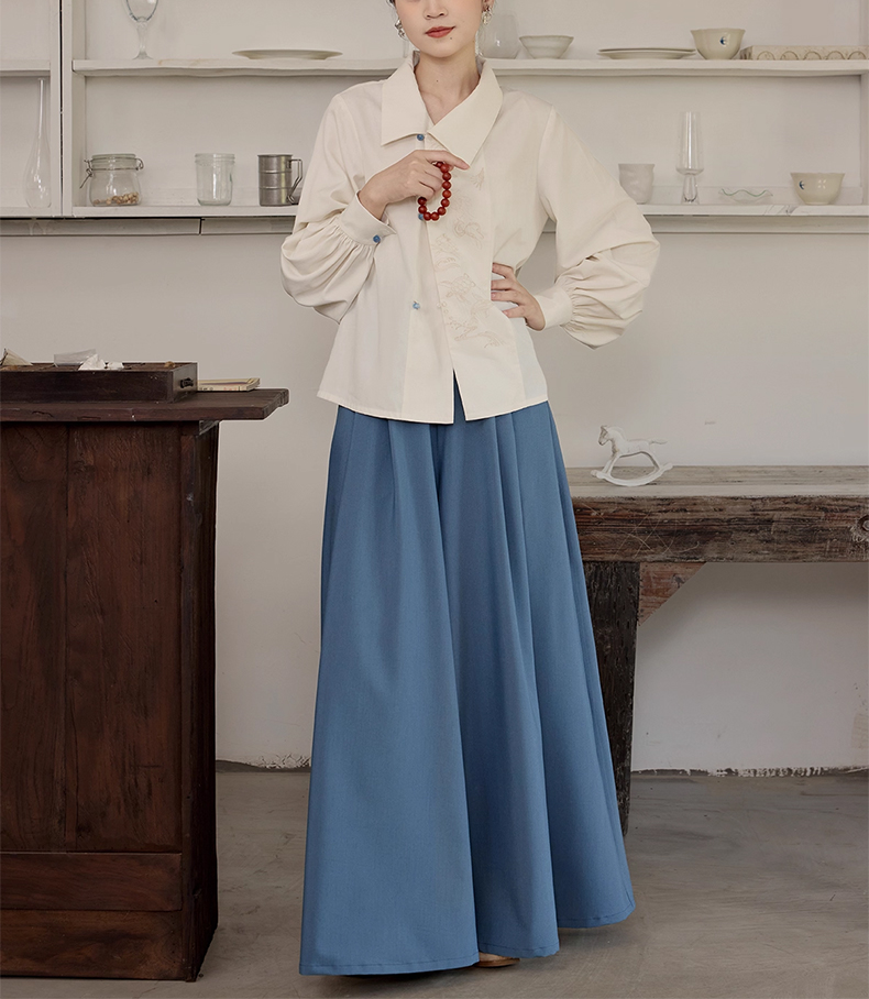 裁缝学苑AQ565长袖衬衫上衣国风阔腿裤通勤套装纸样女装汉服两件套样板