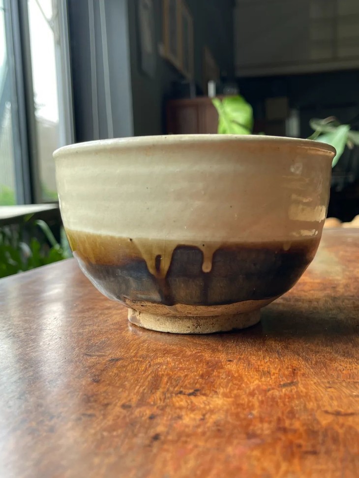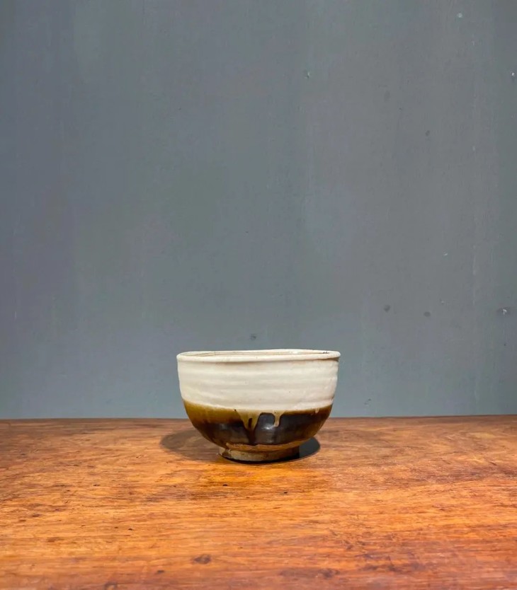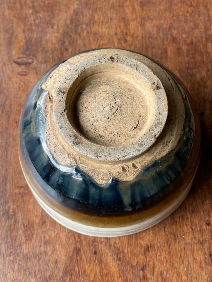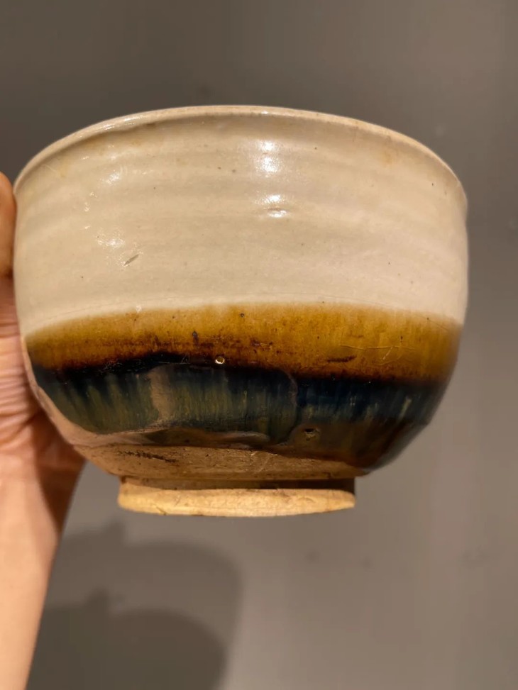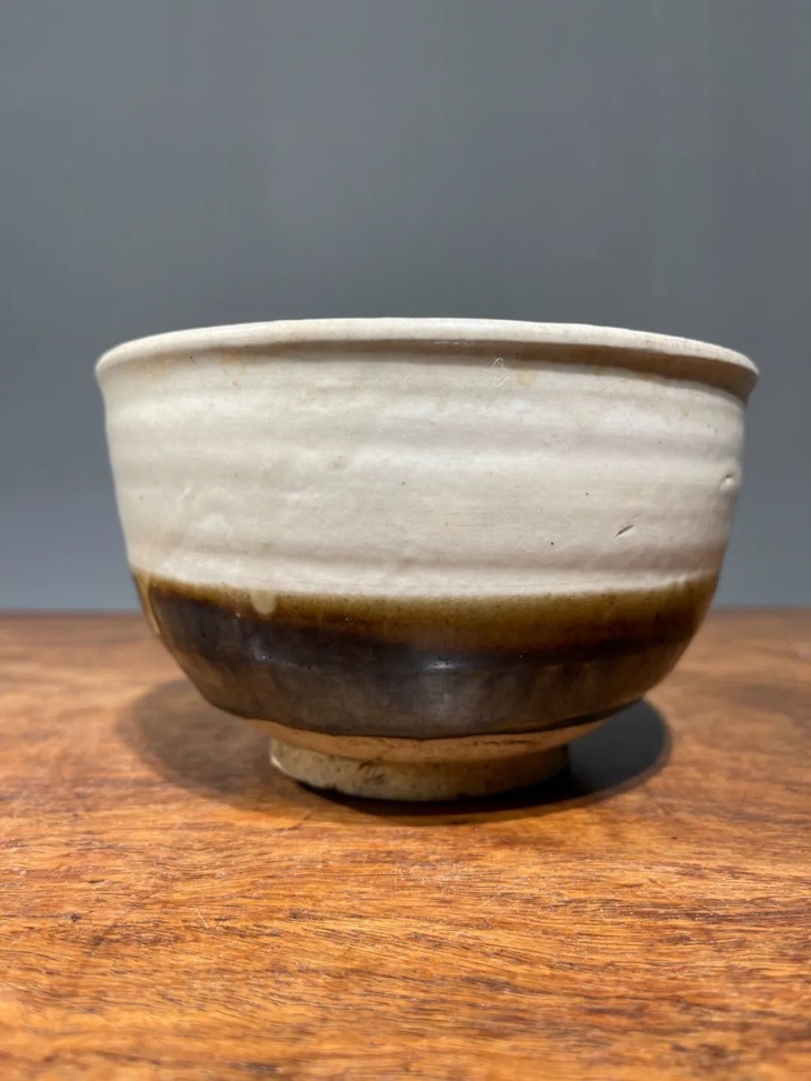 此磁州窑白褐双色佛钵式碗,磁州窑特有的白化妆土与褐黑釉双色构图简约大方,碗型型优雅端庄,简约朴实,流畅自然,下方圈足器底露淡灰胎,快刀修胚痕迹处处可见,依其胎、釉与造型之气质。