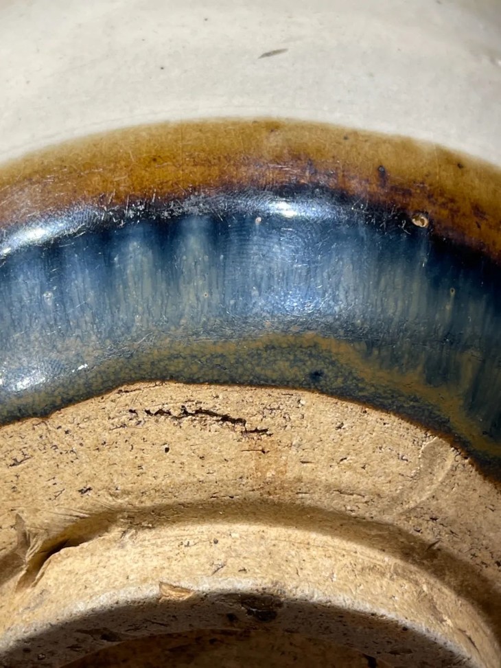 此磁州窑白褐双色佛钵式碗,如图所示,口沿与底部外壁数除磕碰伤,以及表面磨损痕外,基本保存完好。