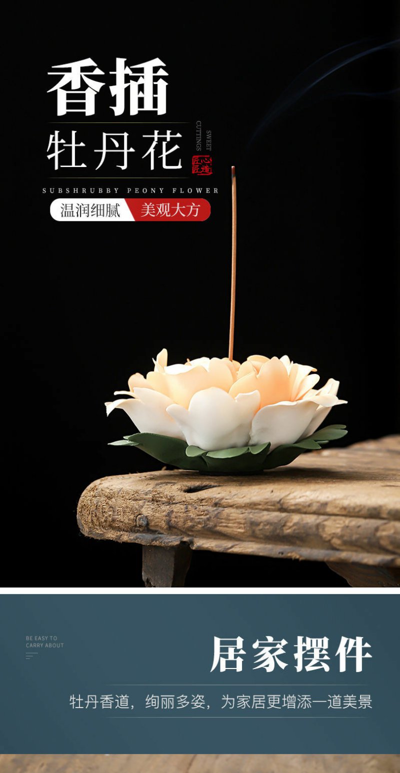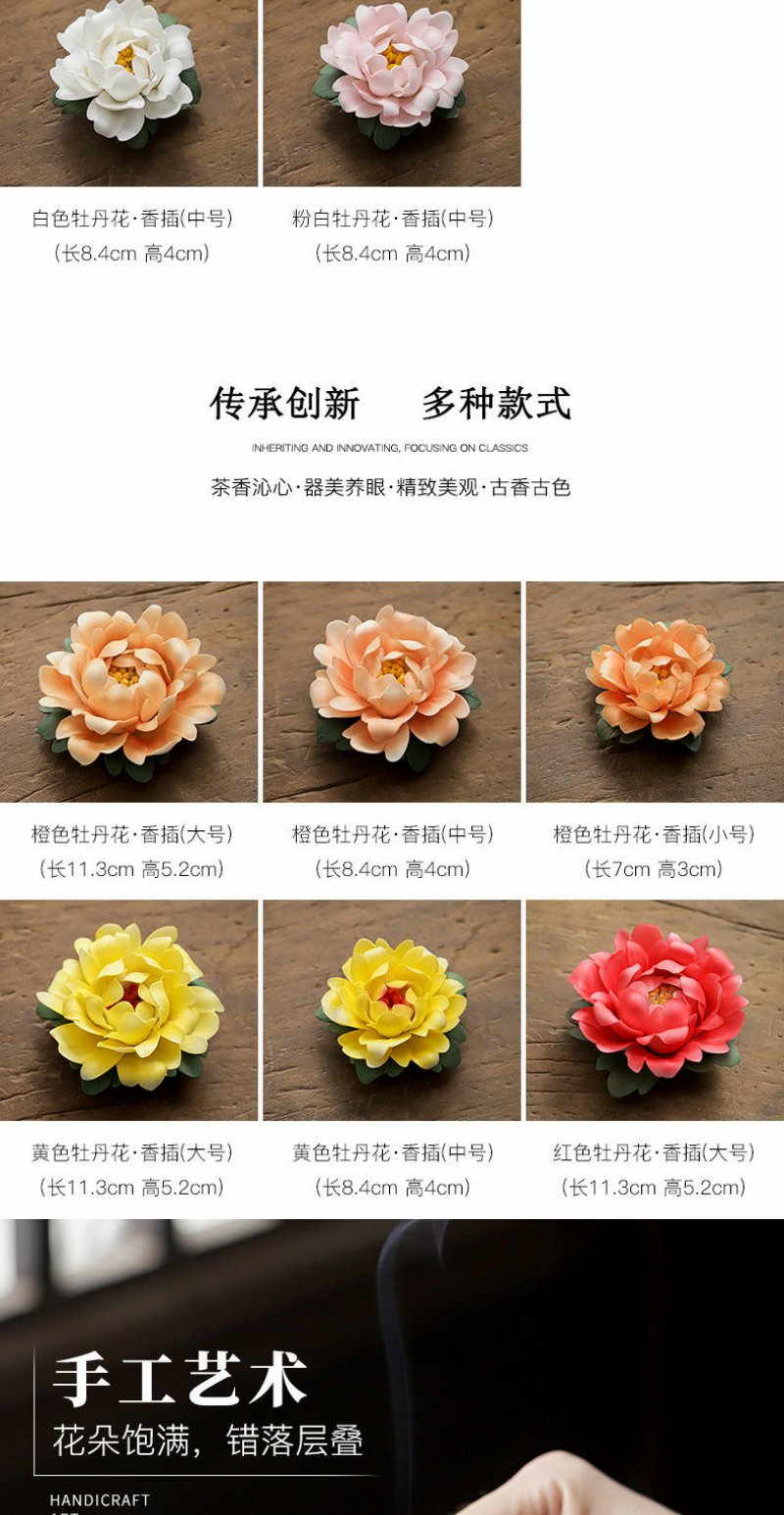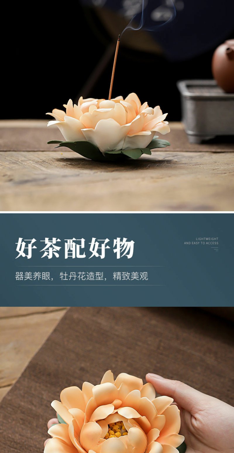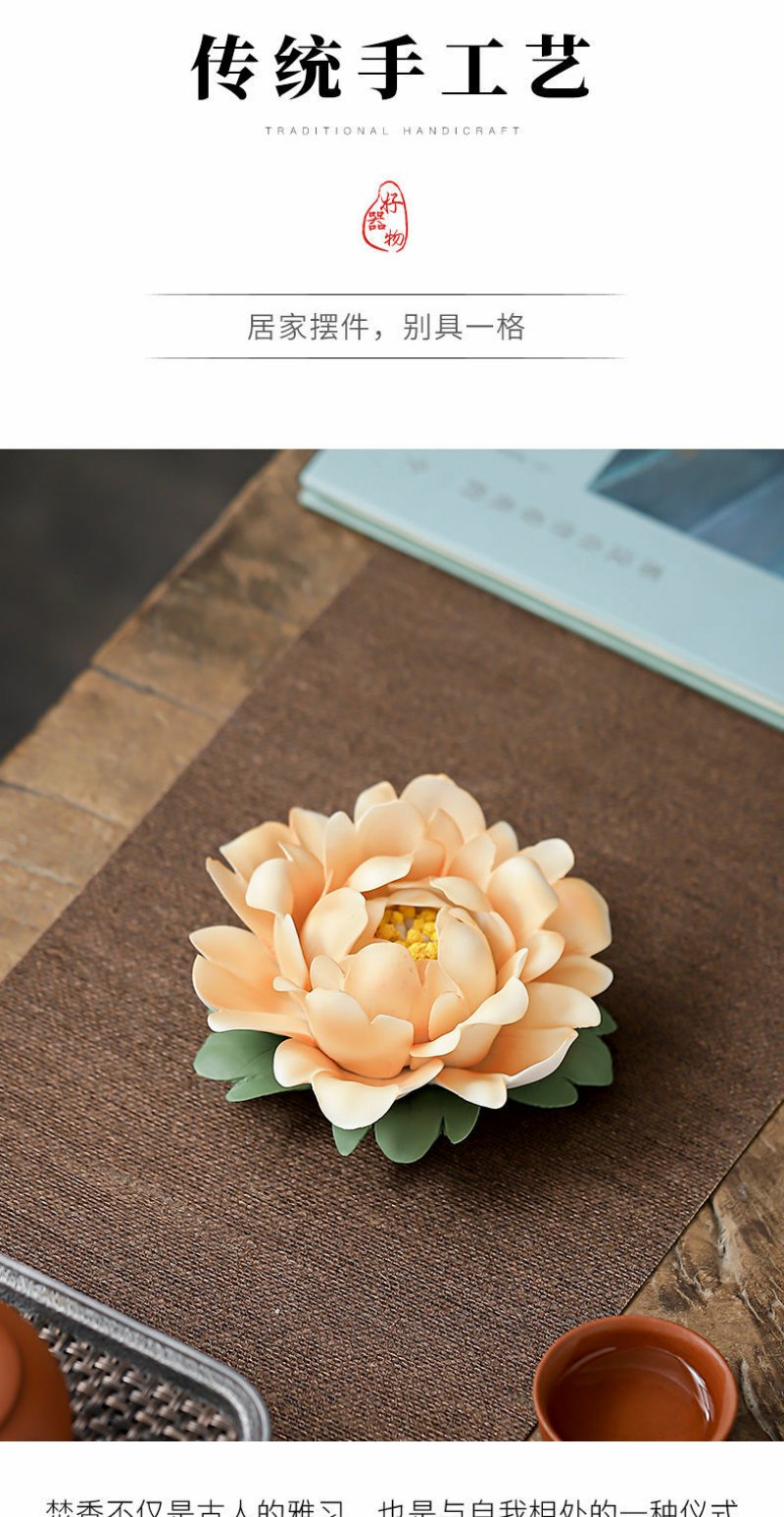 陶瓷富贵牡丹花居家线香插熏香座茶道茶盘摆件室内客厅装饰