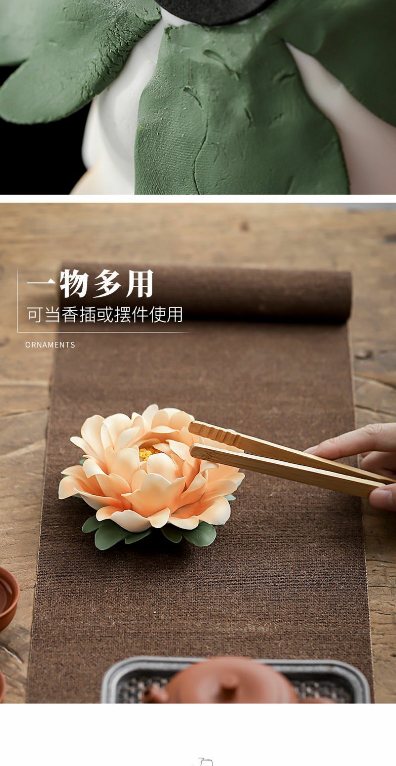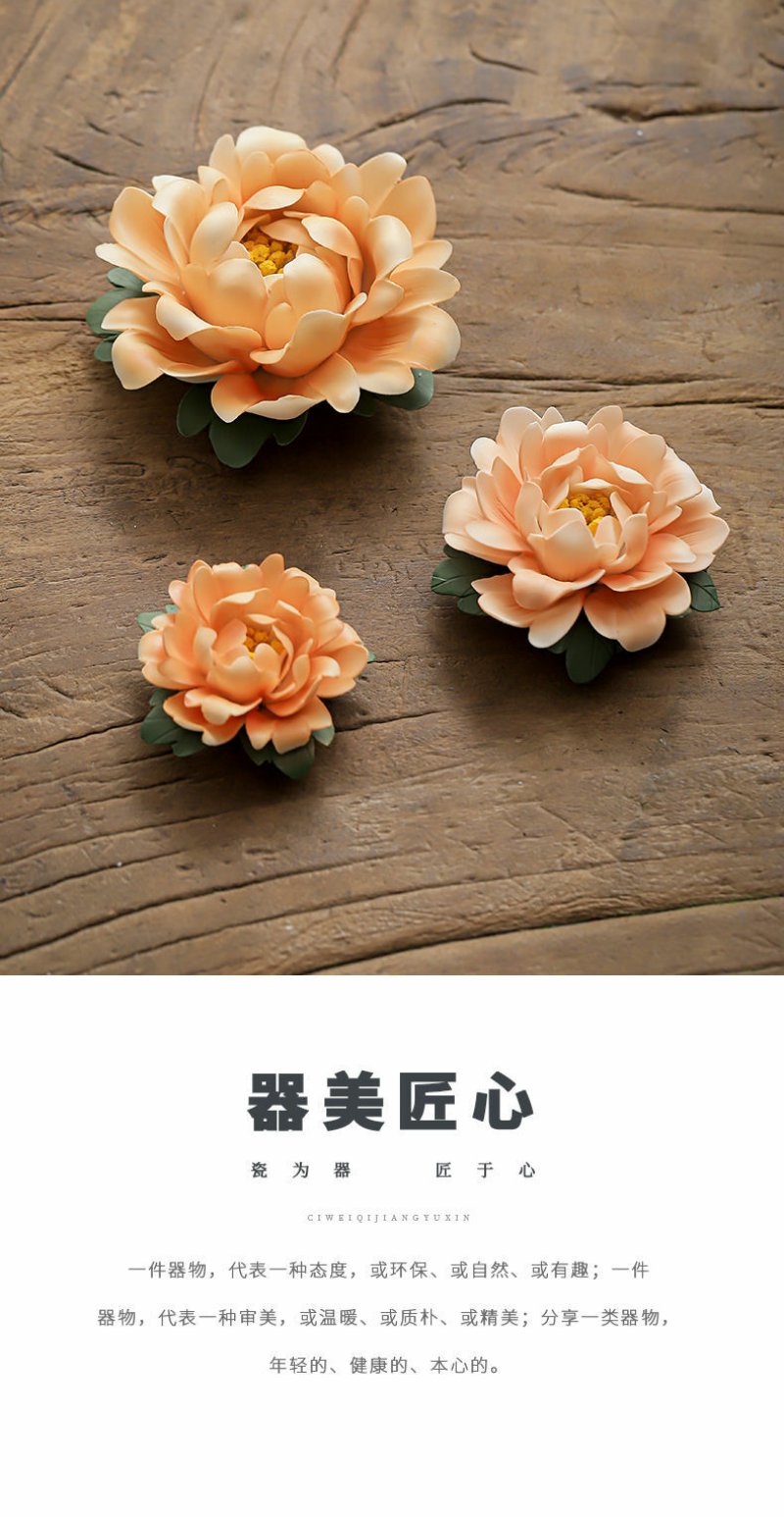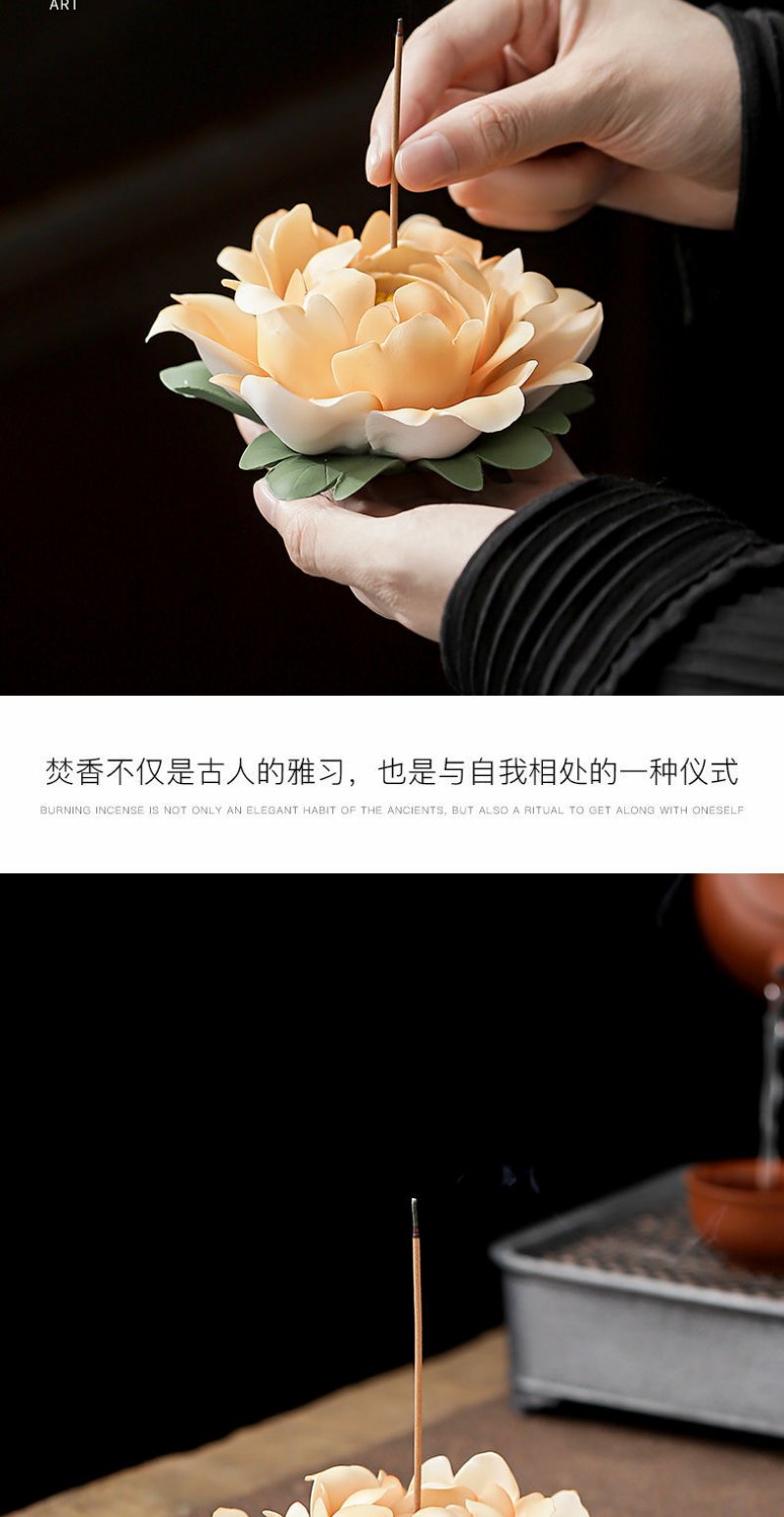 陶瓷富贵牡丹花居家线香插熏香座茶道茶盘摆件室内客厅装饰