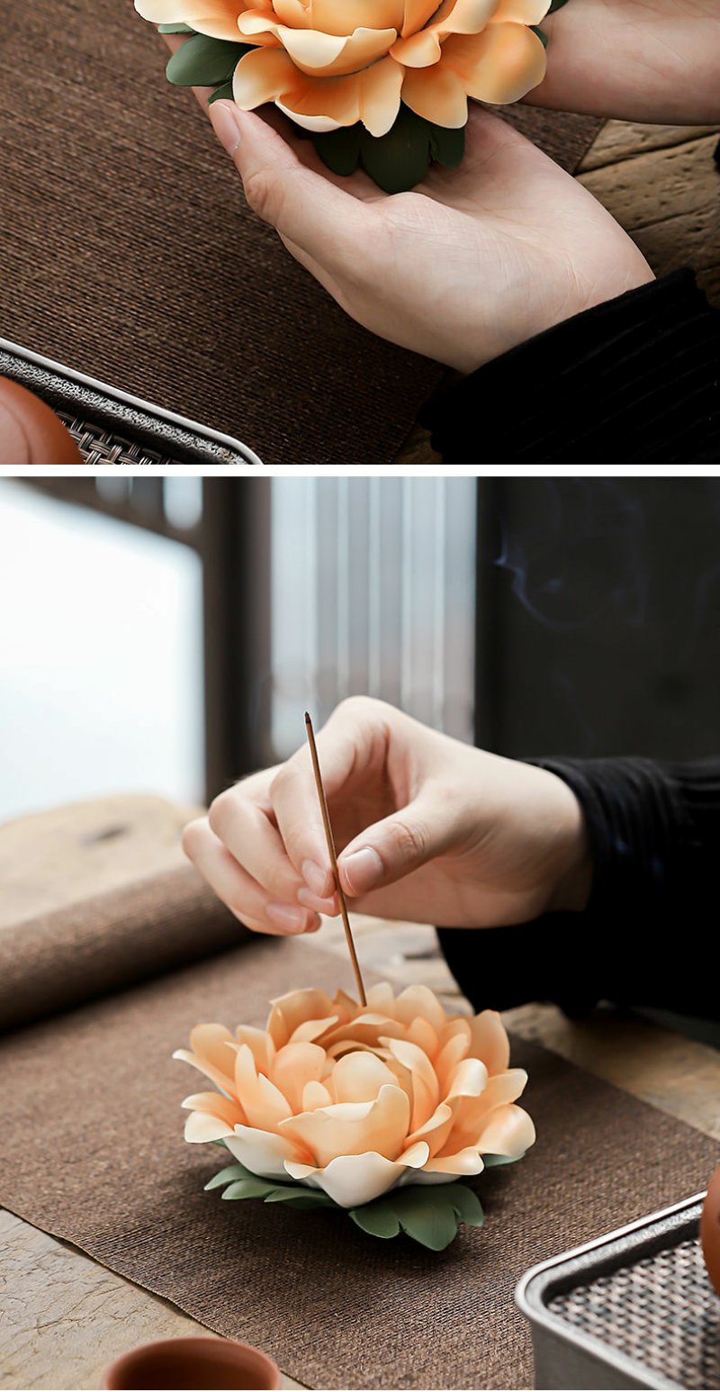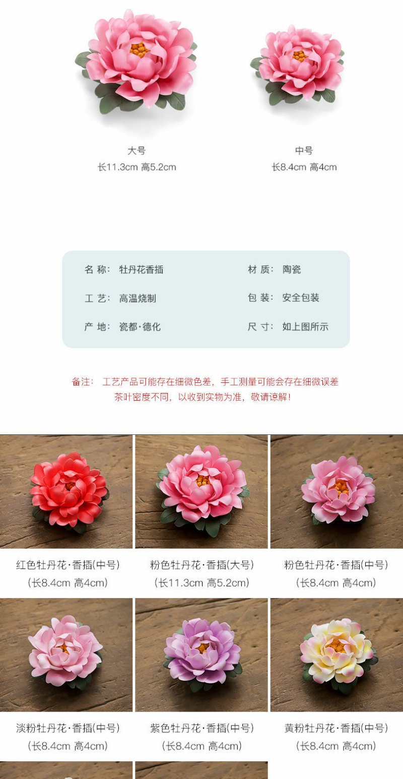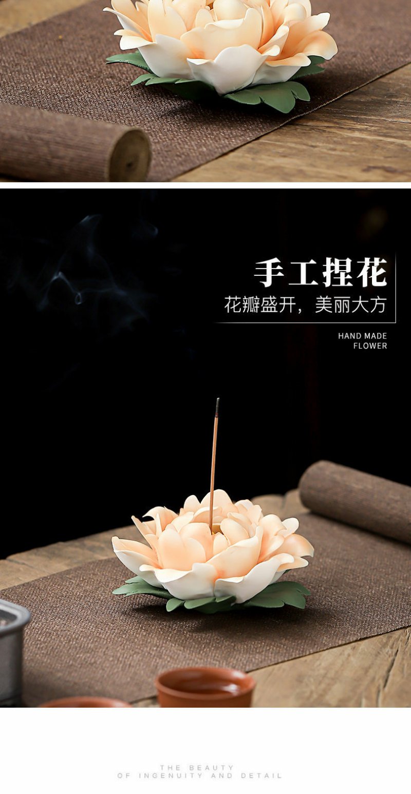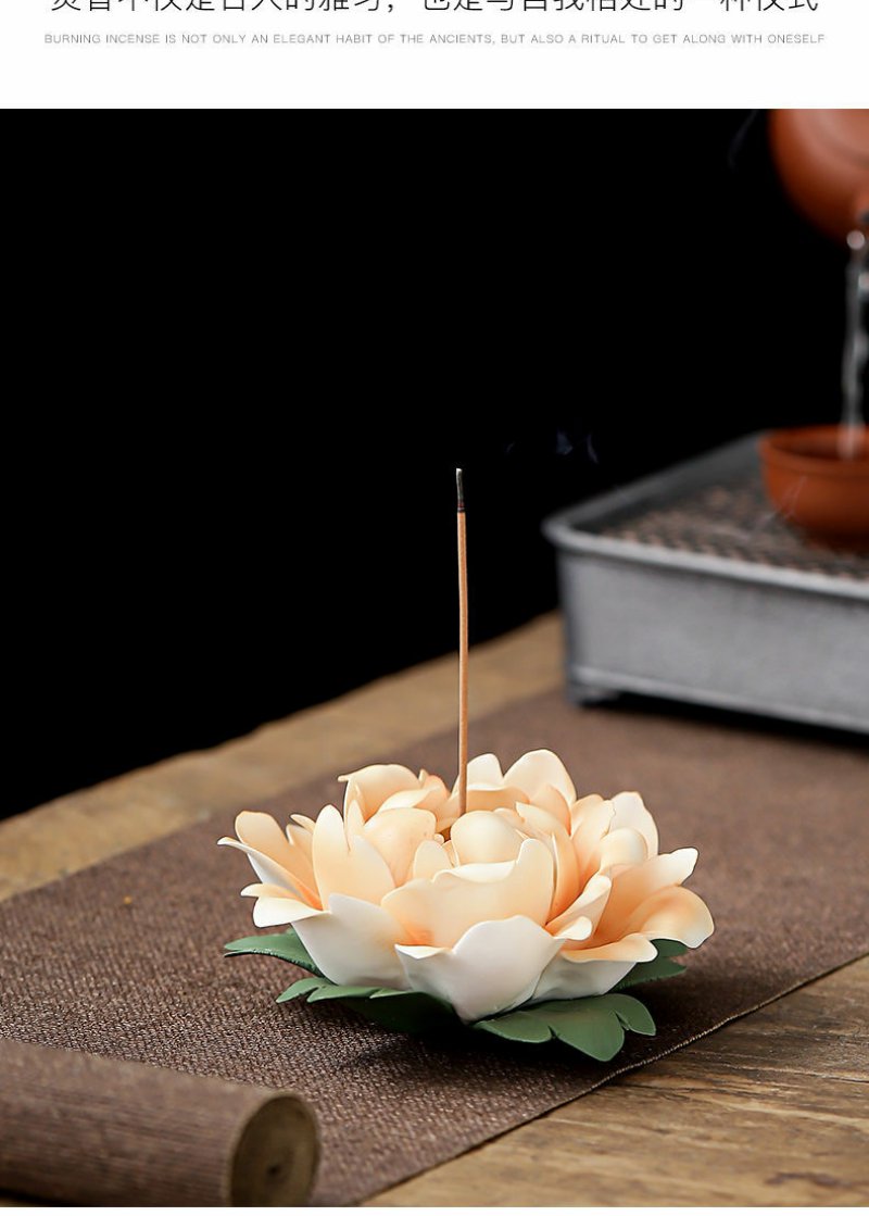 陶瓷富贵牡丹花居家线香插熏香座茶道茶盘摆件室内客厅装饰