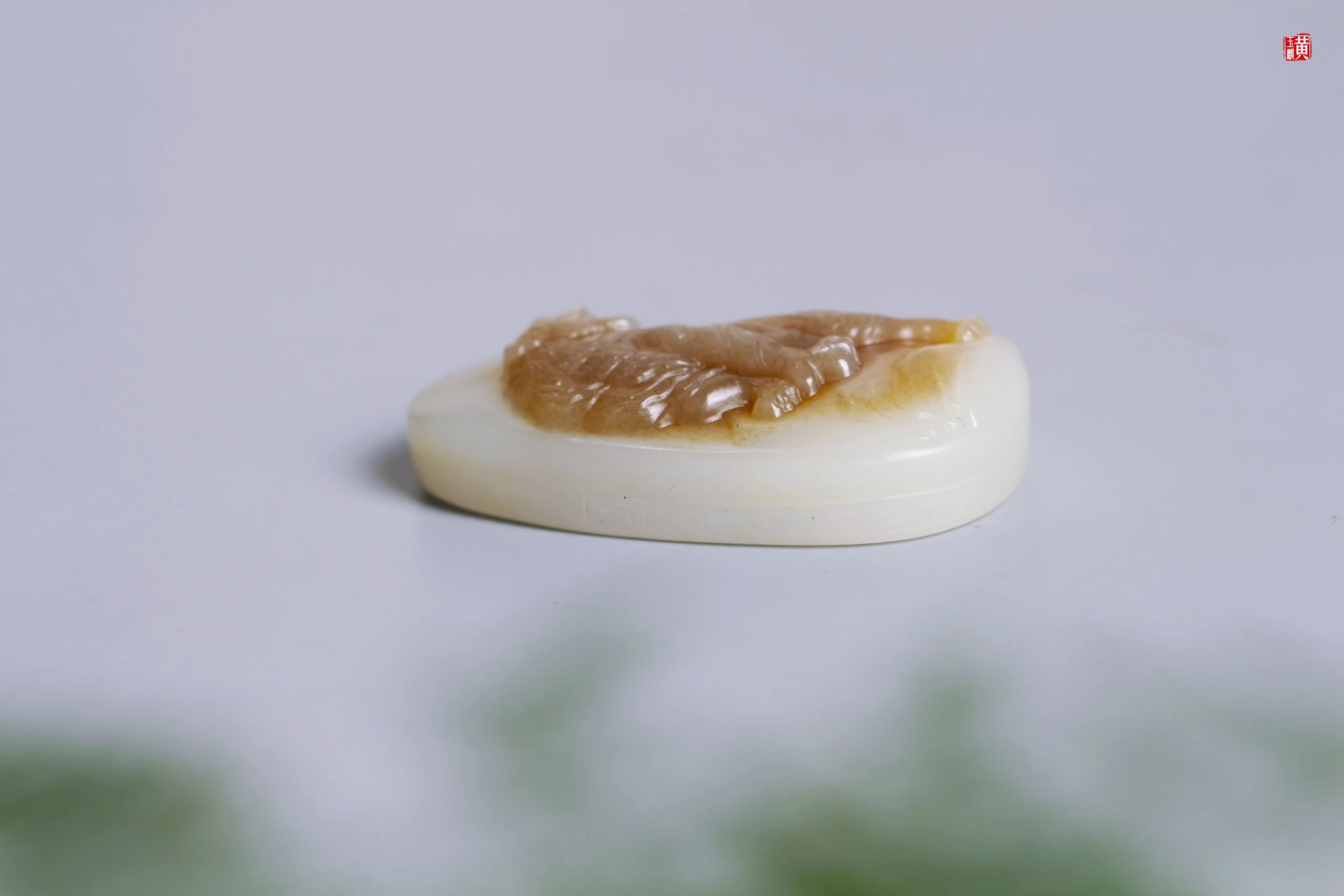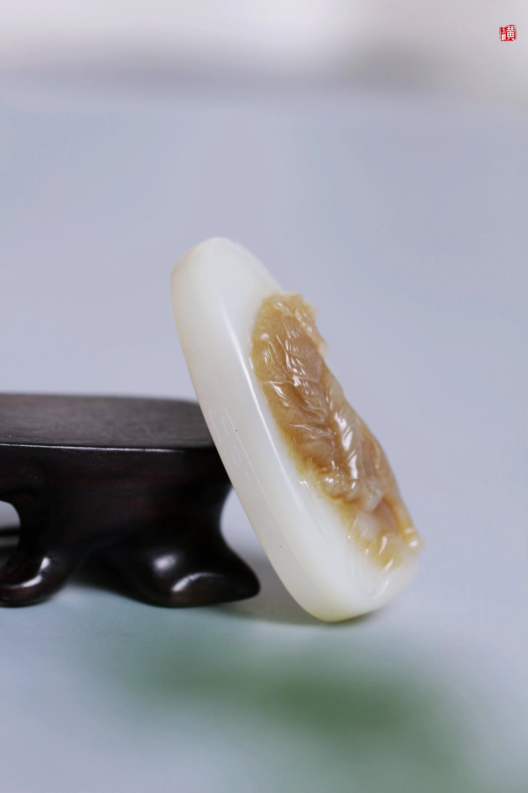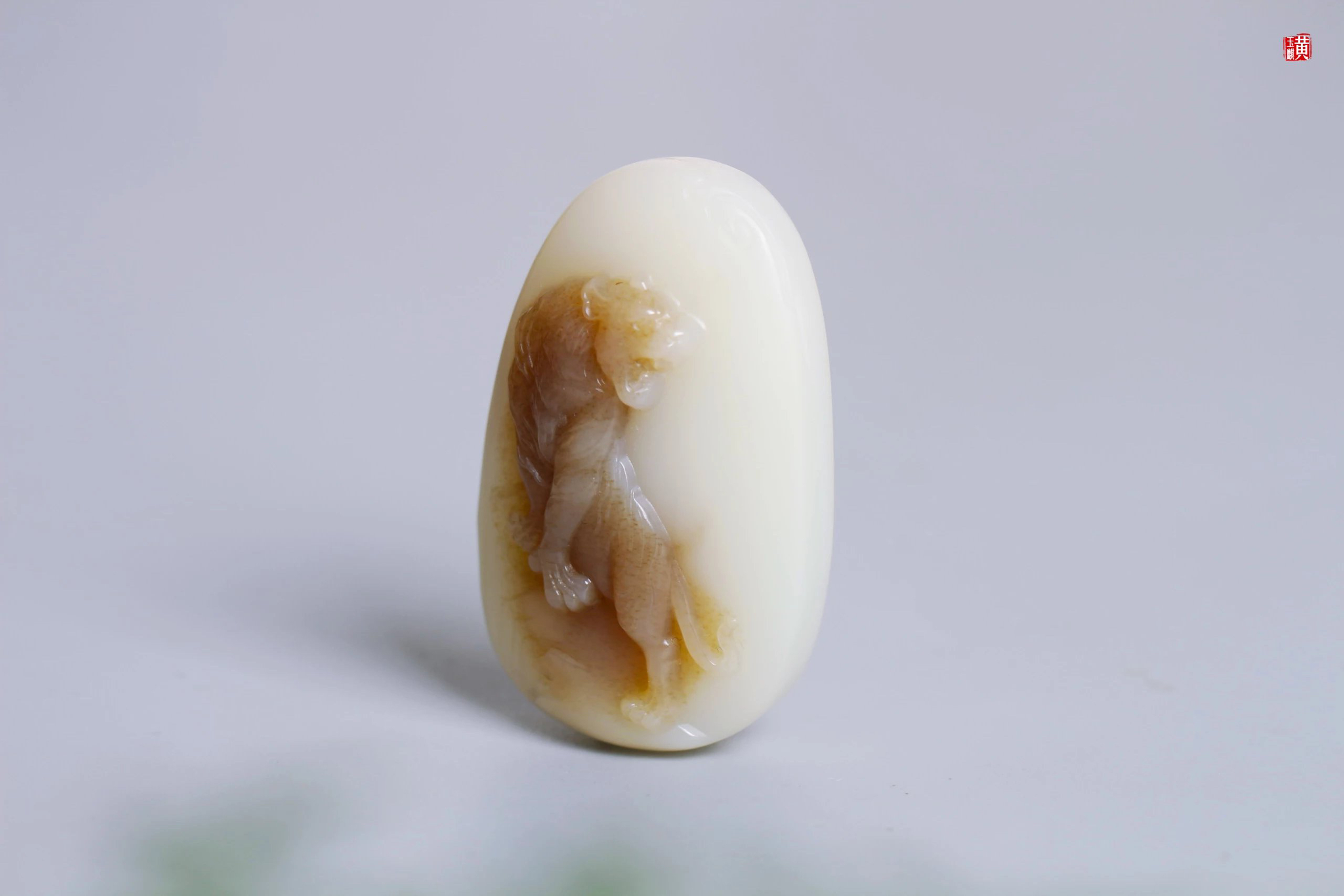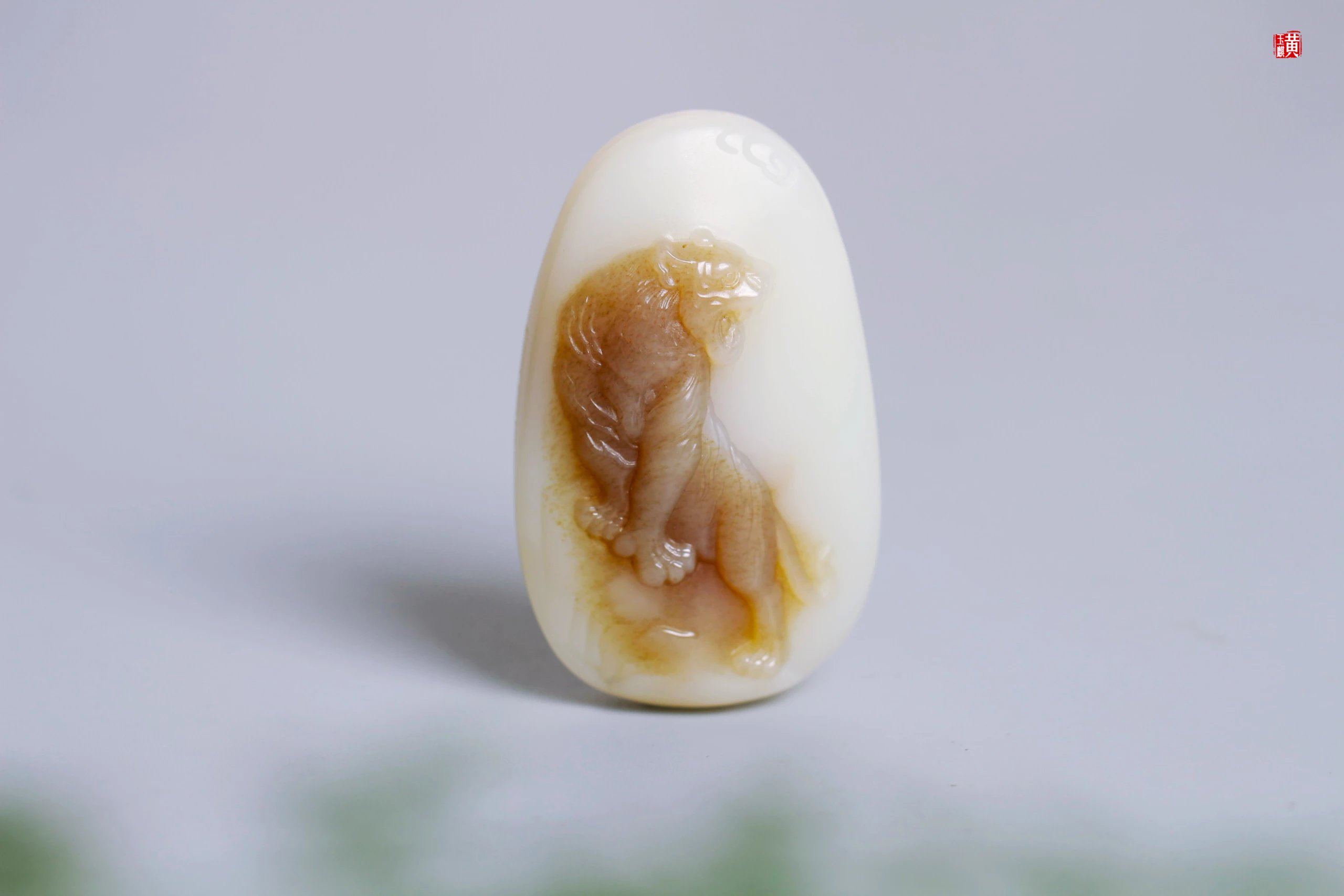 和田玉【上山虎】白玉俏糖色,配精美挂绳赠证书重:43.96g尺寸:52.3*31.9*14.4mm