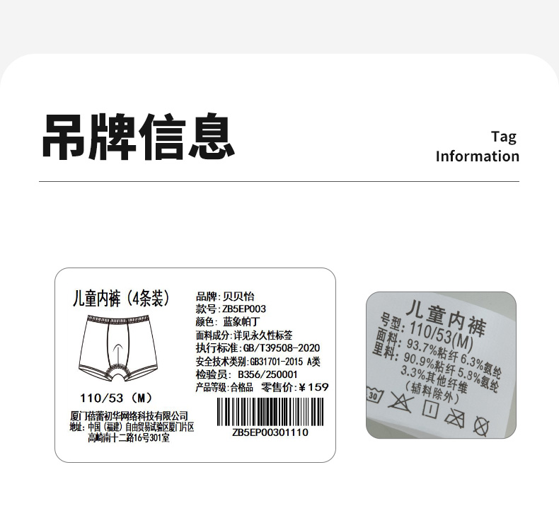 贝贝怡2025年男童内裤(4件装)ZB5EP003