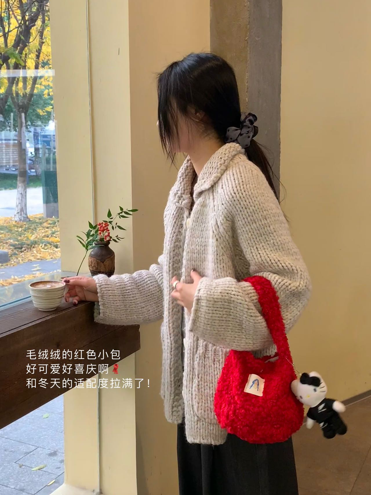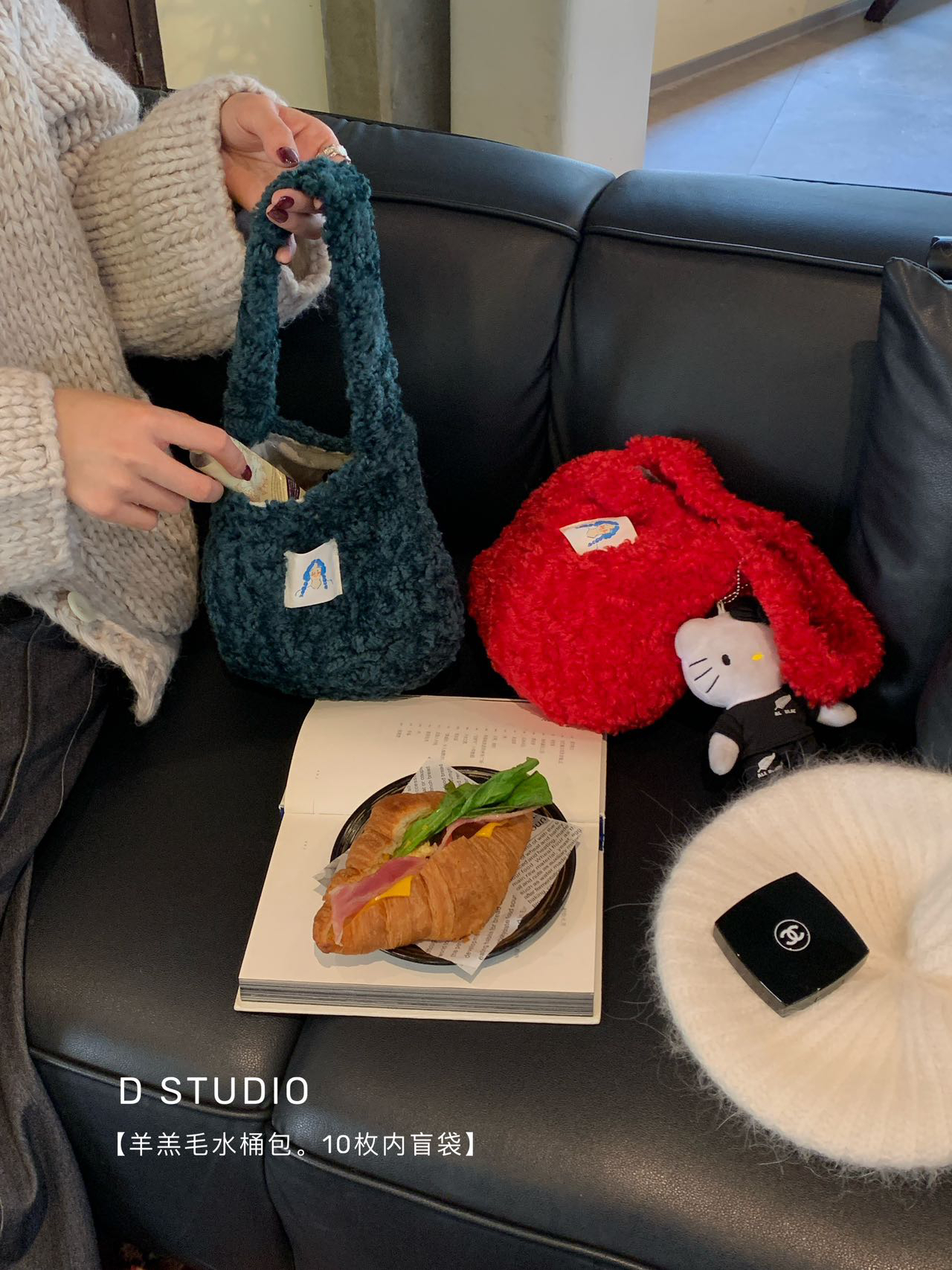 〔可爱羊羔毛水桶包。10枚温柔内〕盲袋