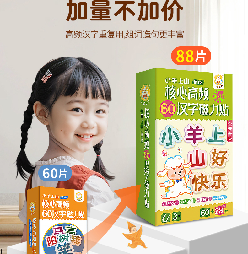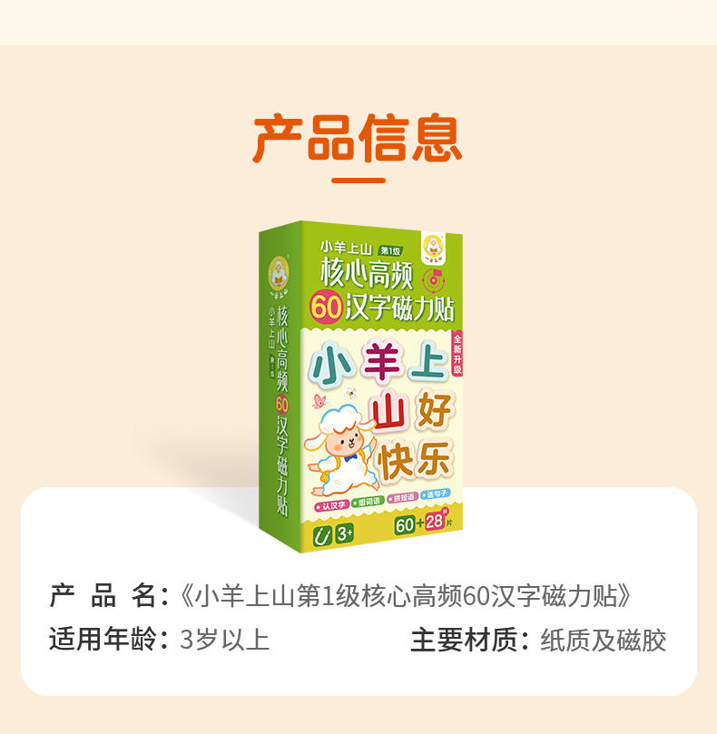 【青葫芦】小羊上山核心高频60汉字磁力贴 第1-3级