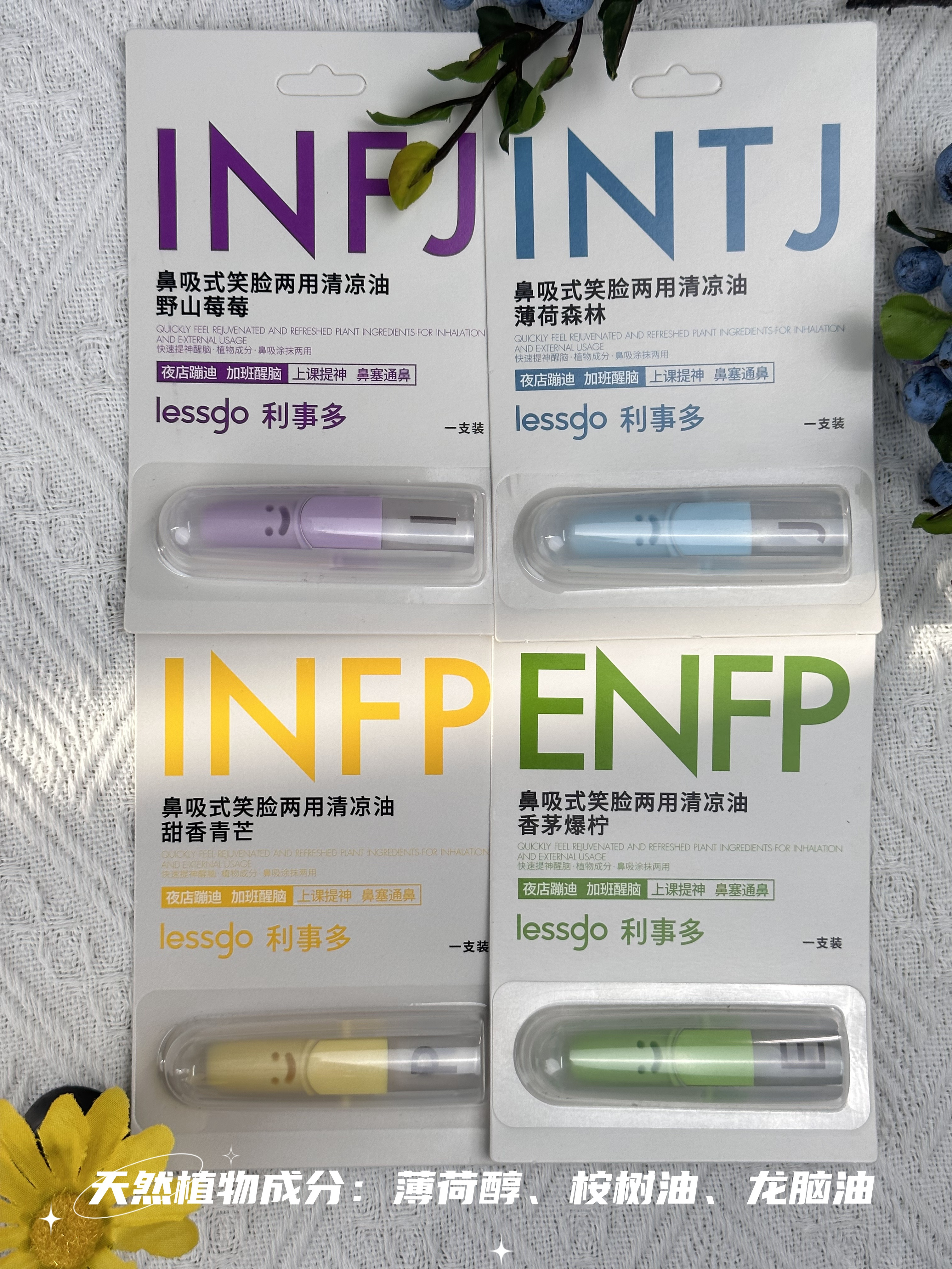 lessgo利事多 MBTI限定系列鼻吸式笑脸两用清凉油 2支/4支+挂绳 用香气治愈灵魂,解锁你的专属情绪价值;