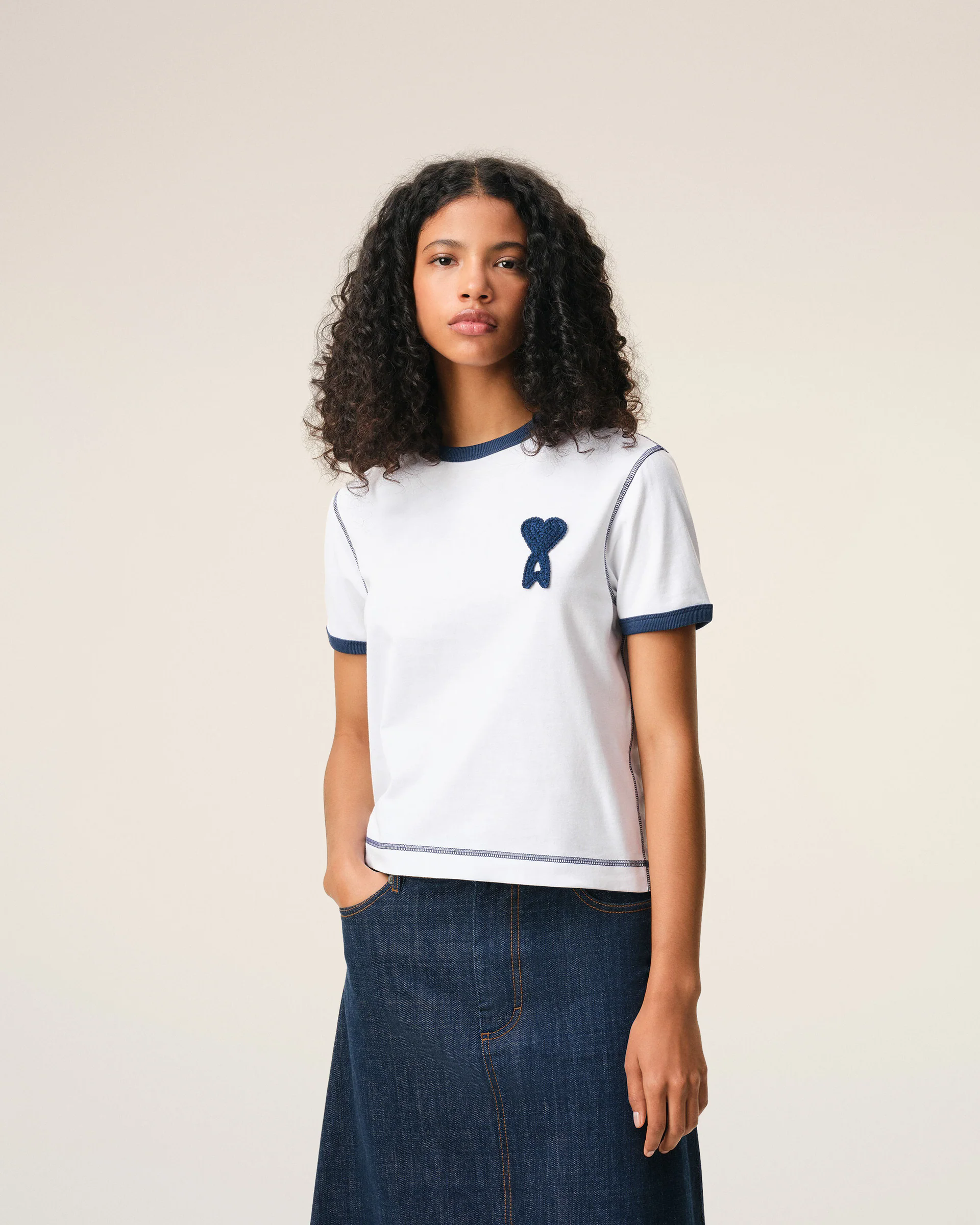 字母tee合集,三个款一起。复古宽松设计撞色衍缝情侣t恤E040258