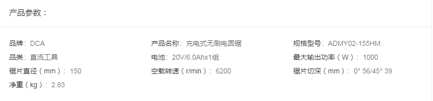 DCA东成20V充电式无刷电圆锯ADMY02-155HM