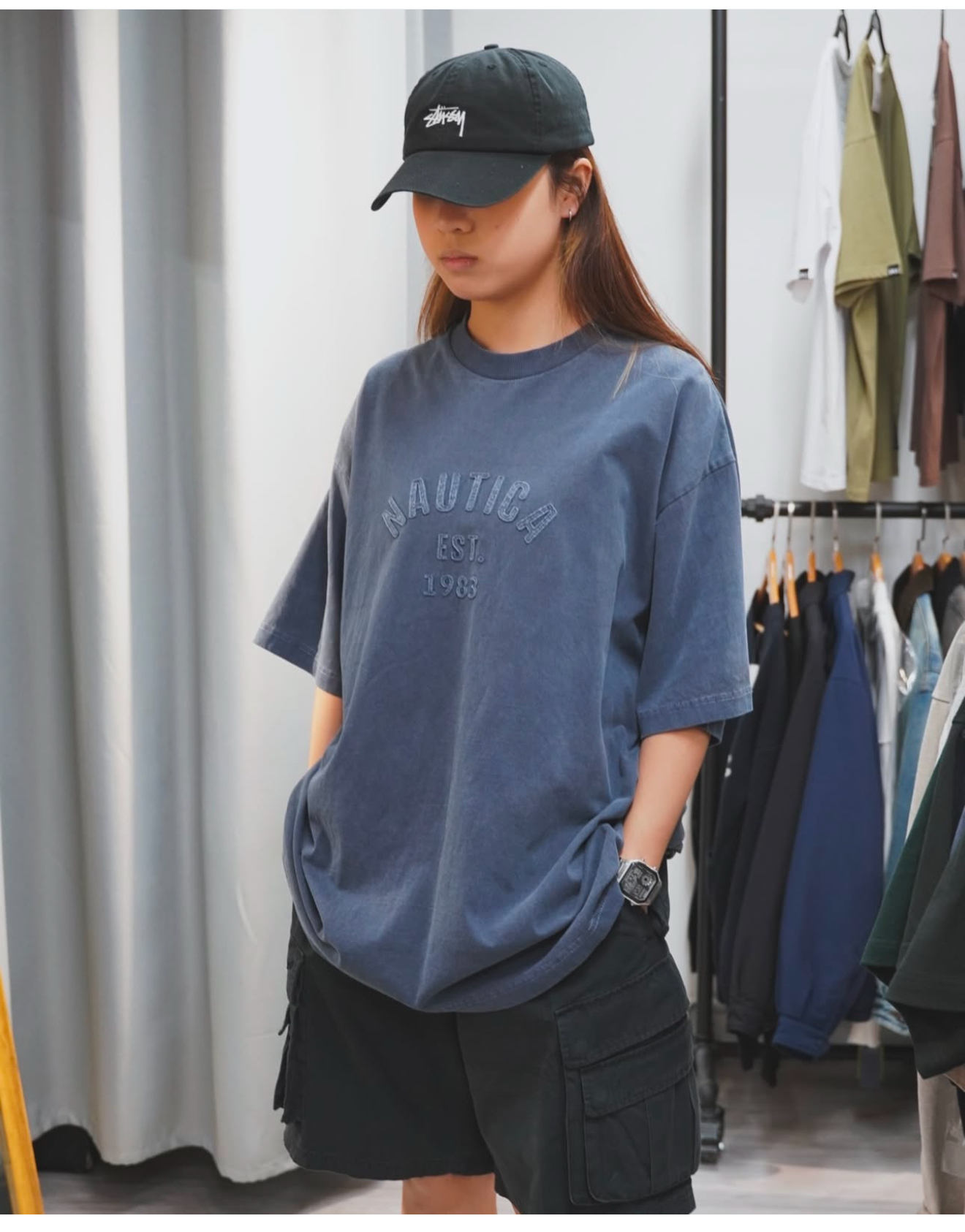 版型稍宽松,日系富有的舒适性加上质感的做工男女皆宜,胸前基础1983系列经典贴布刺绣,后背下摆N@UT1CA字母刺绣
