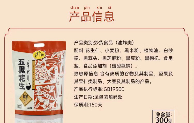 台竹乡炭黑花生五黑花生蒜味300g袋装