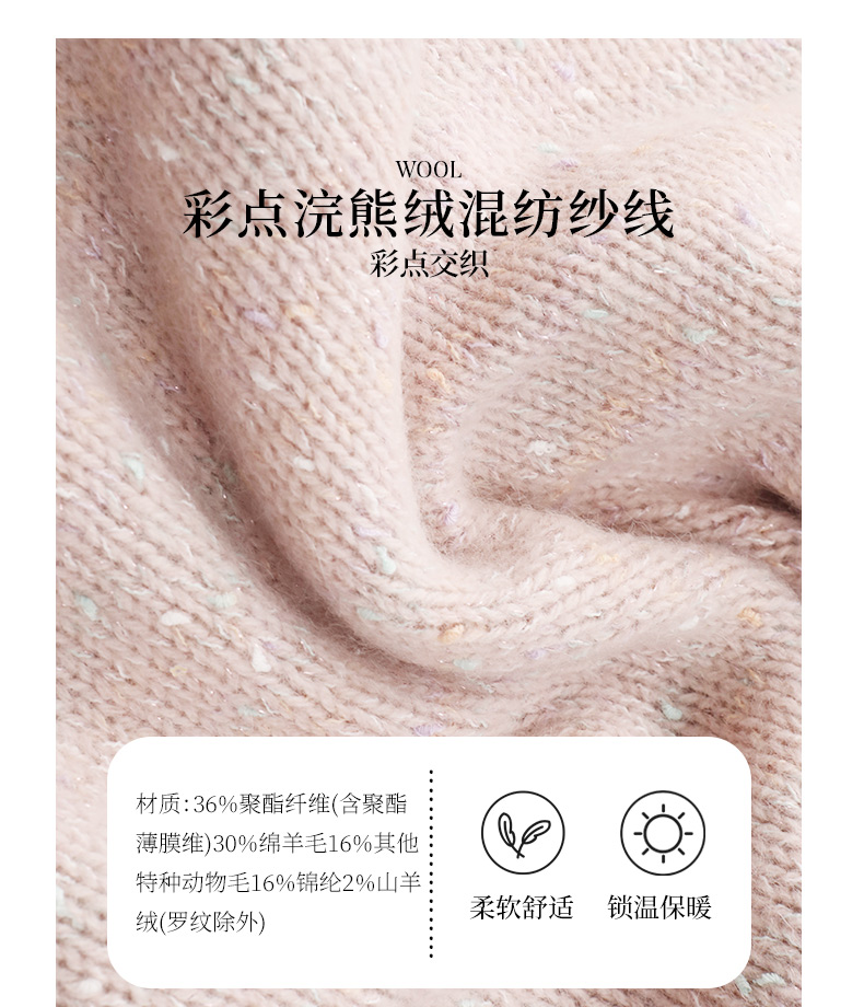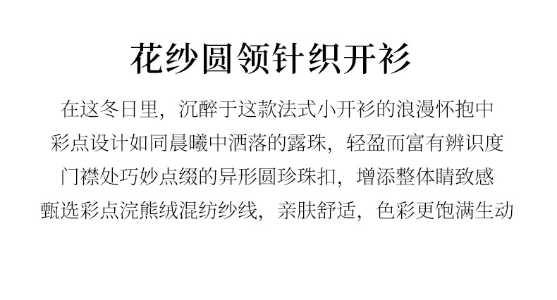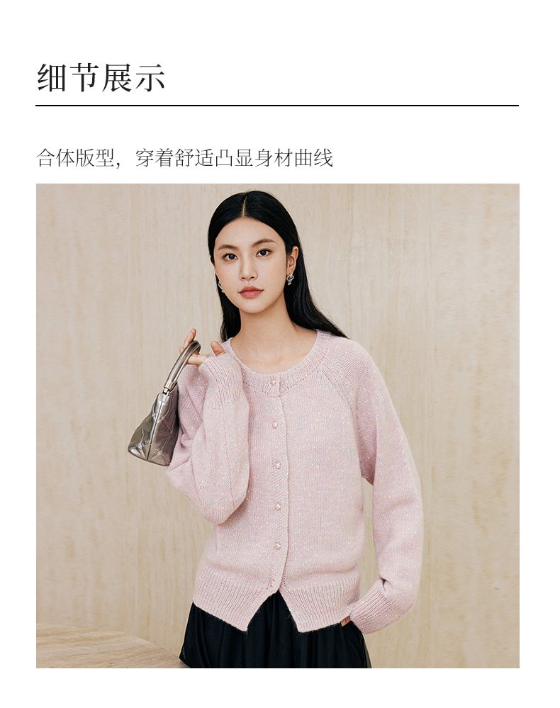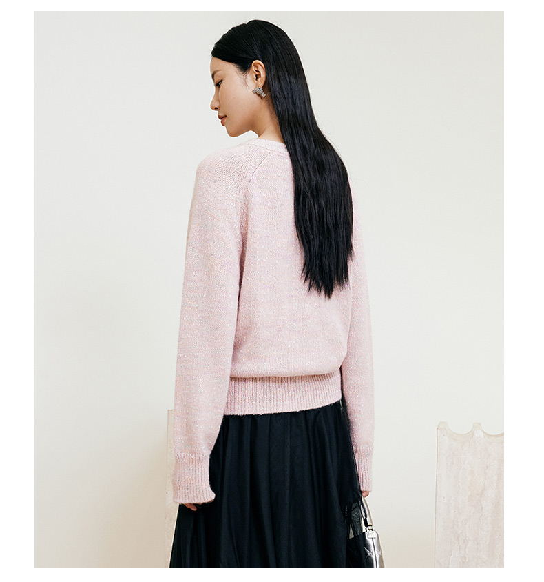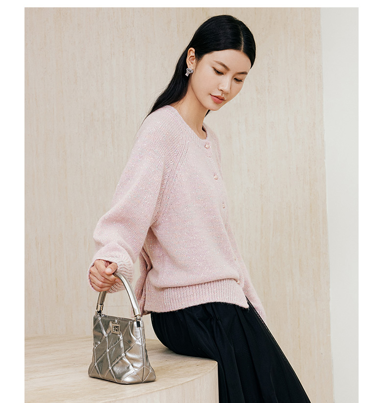 玳莎彩点花纱圆领针织开衫女2024年冬季新款时尚粉色插肩袖上衣 ED33306