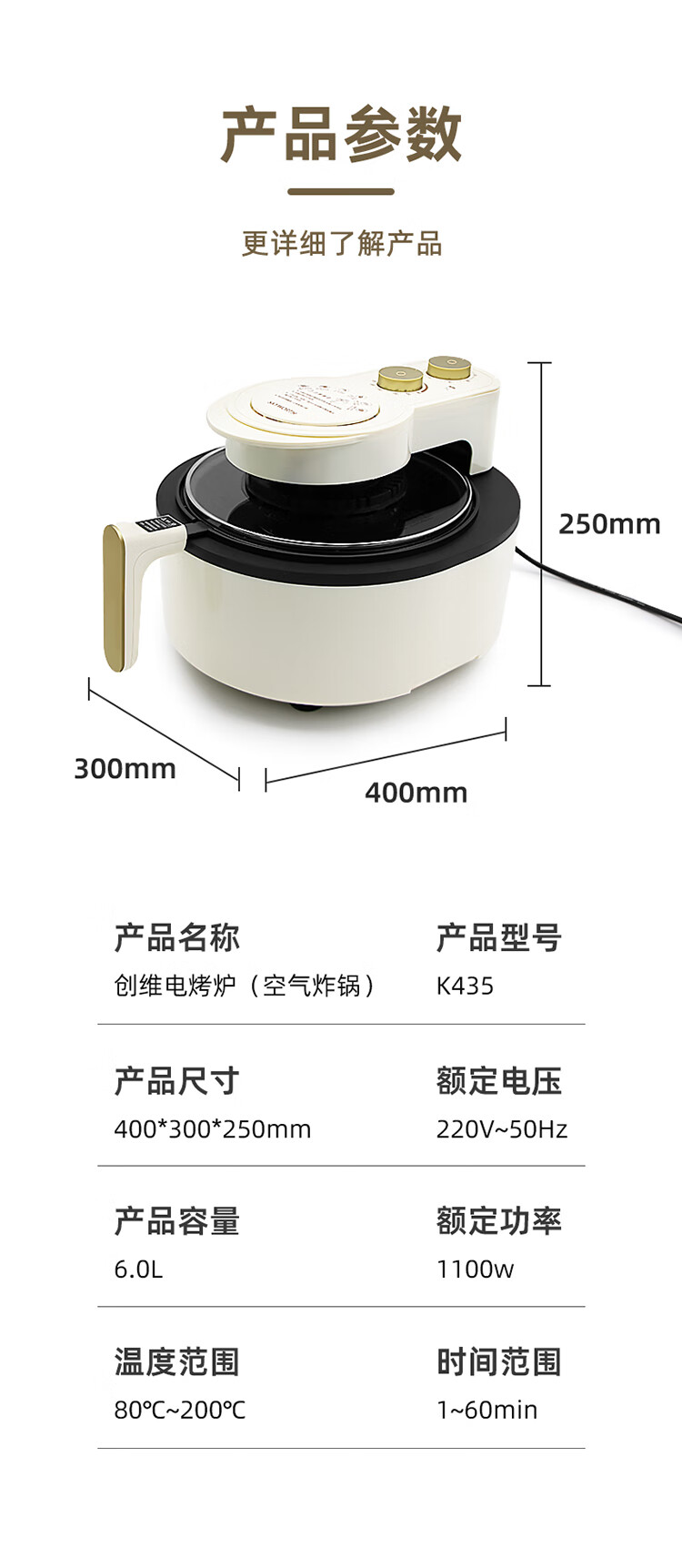创维6L空气炸锅K419 (可视款)