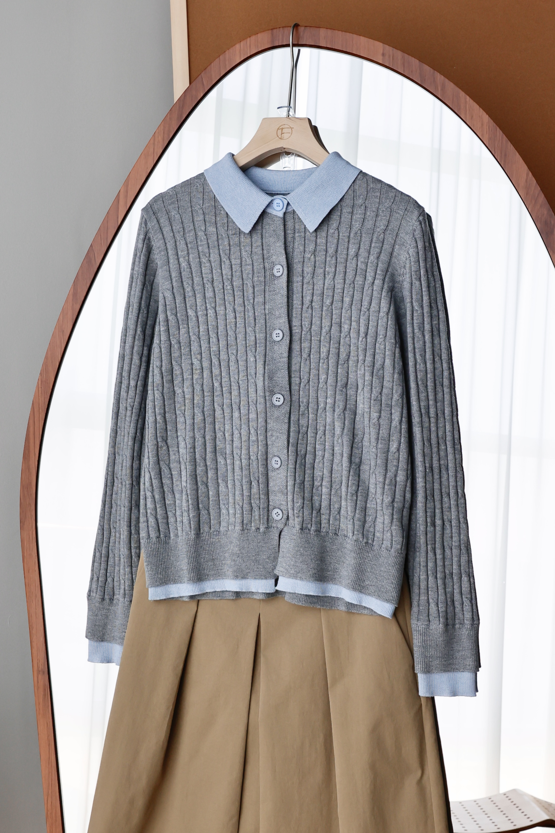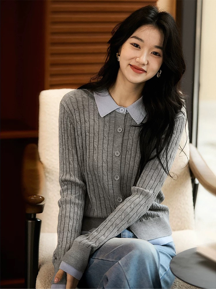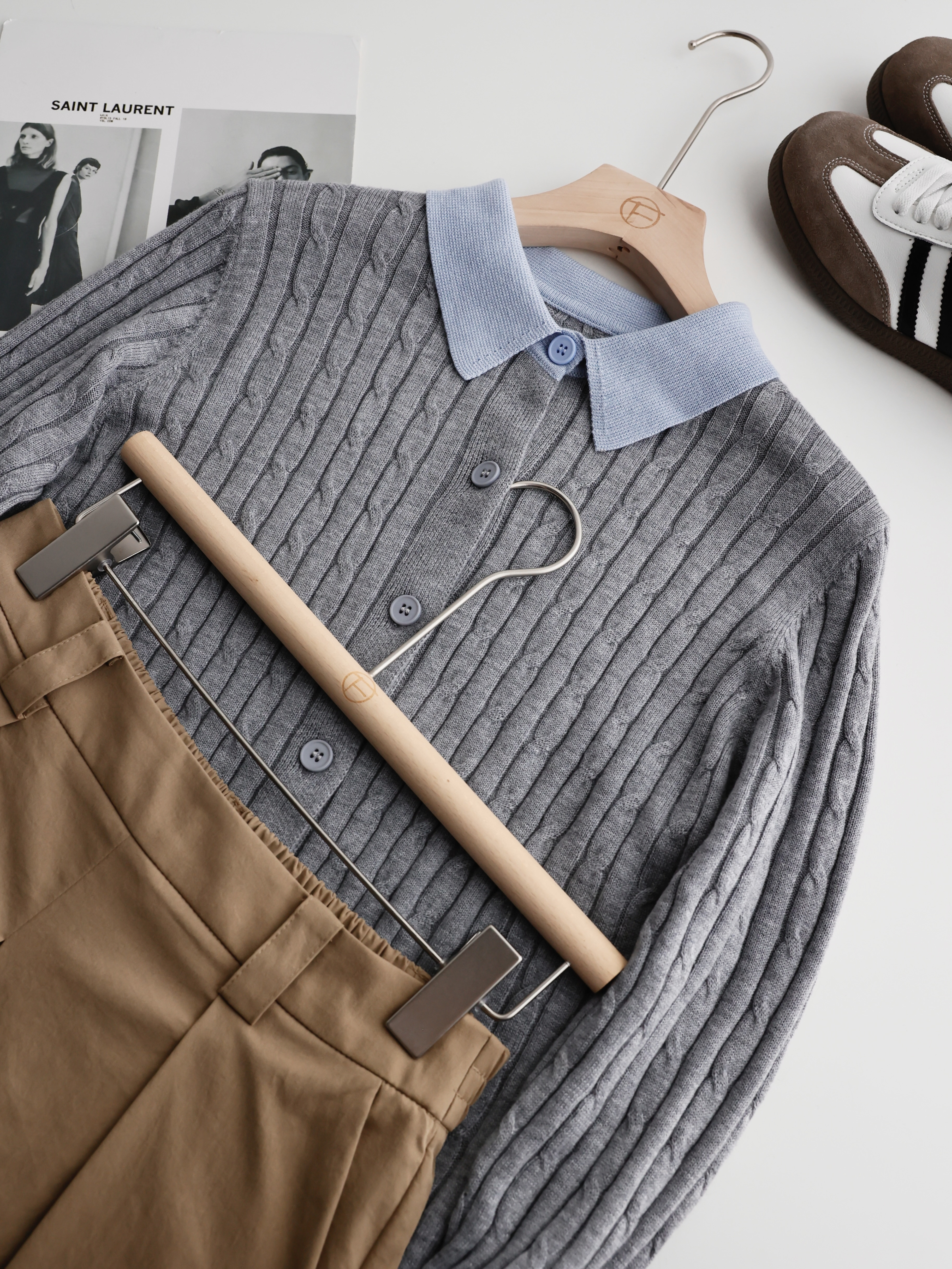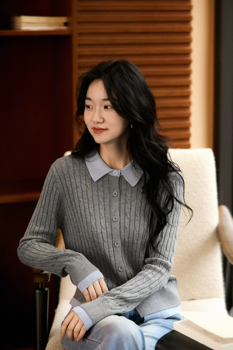 含一点羊毛,棉抗起球混纺,柔软细腻,恰到好处的暖意,敏感肌贴身穿无压力。低饱和度撞色!视觉层次绝了!不浮夸不刻意,淡淡的高级感拿捏得刚刚好!