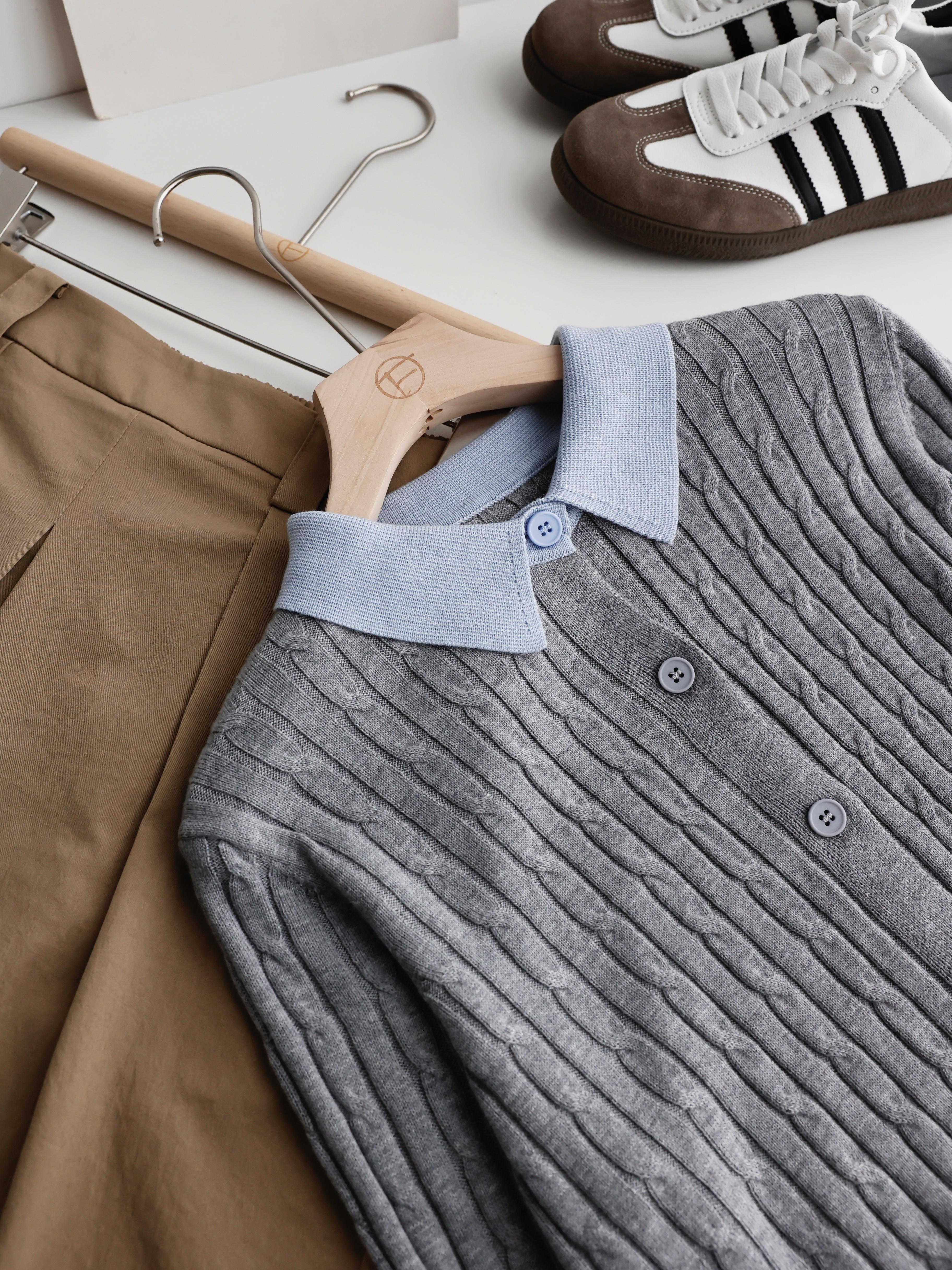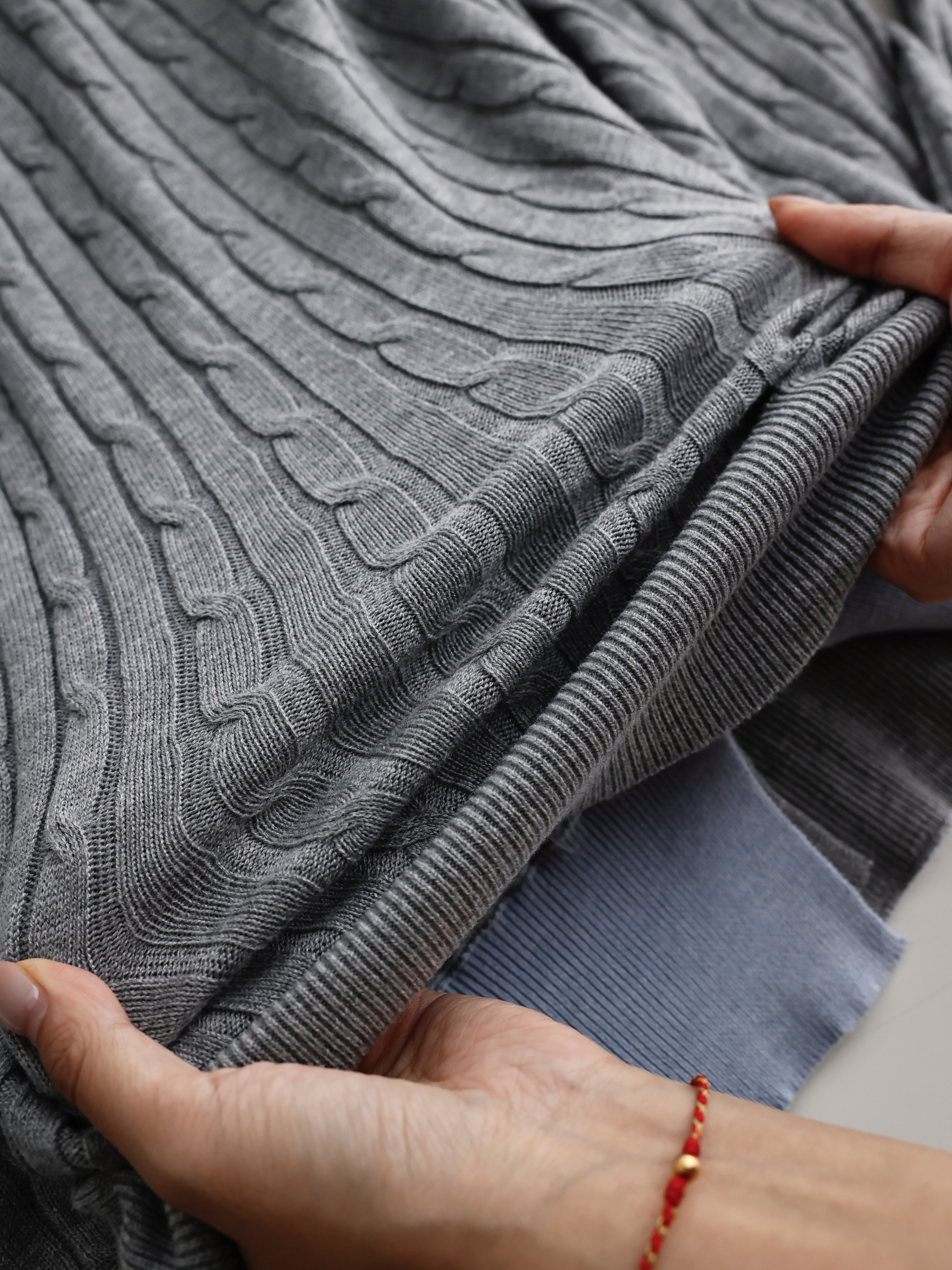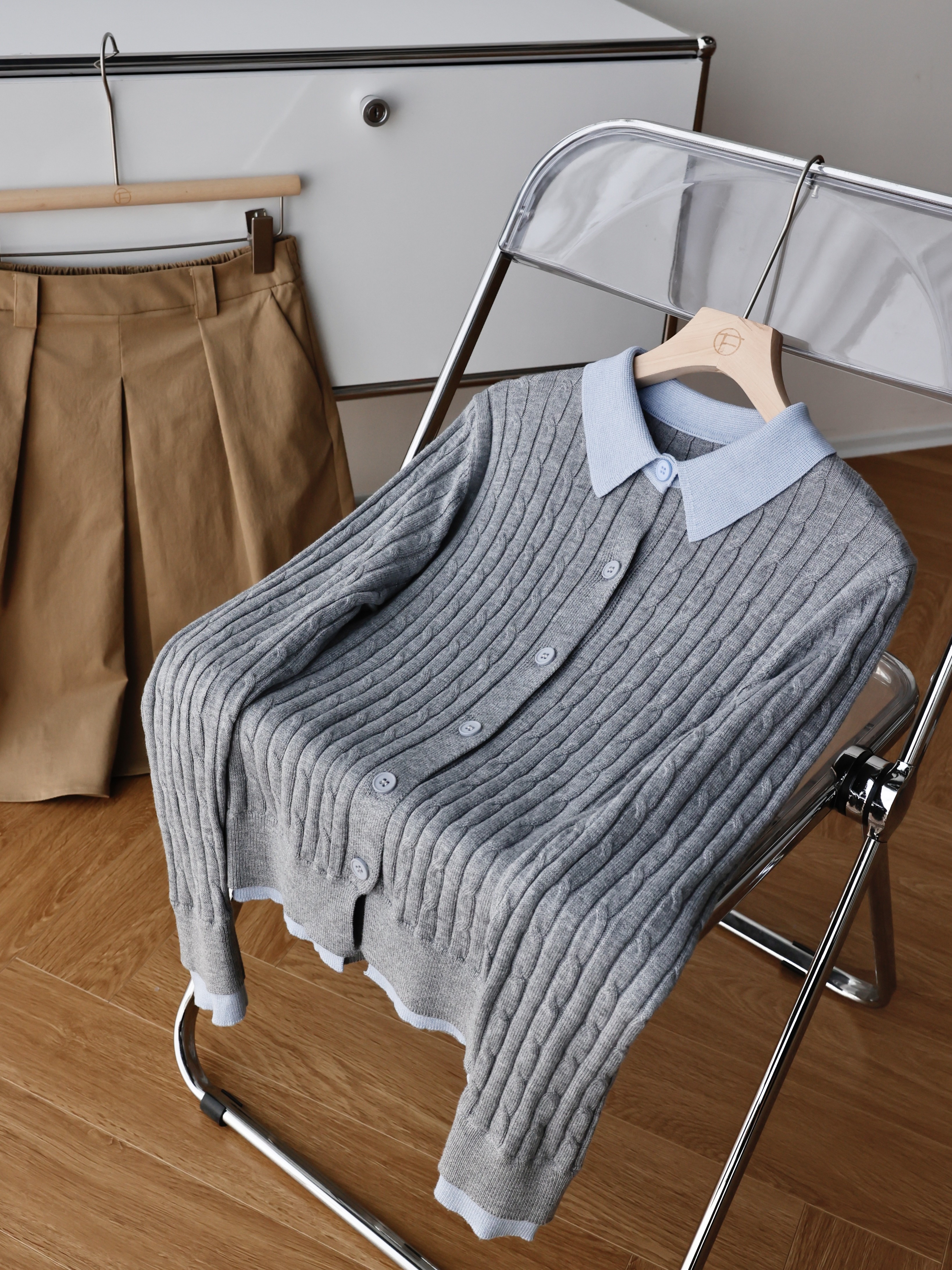 含一点羊毛,棉抗起球混纺,柔软细腻,恰到好处的暖意,敏感肌贴身穿无压力。低饱和度撞色!视觉层次绝了!不浮夸不刻意,淡淡的高级感拿捏得刚刚好!