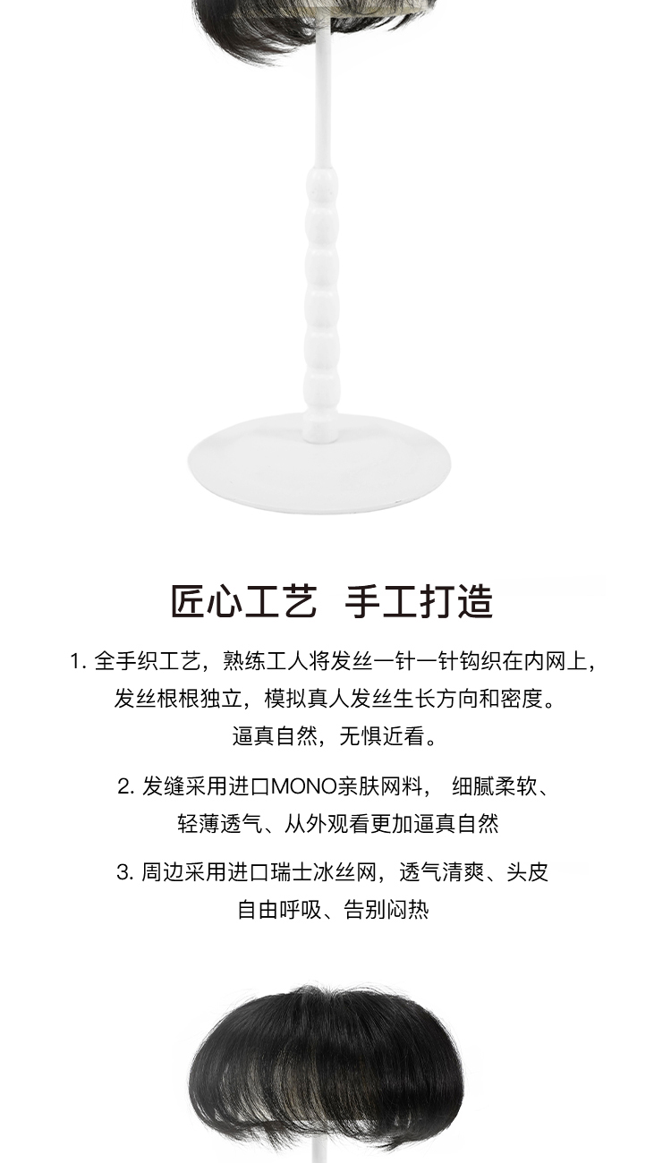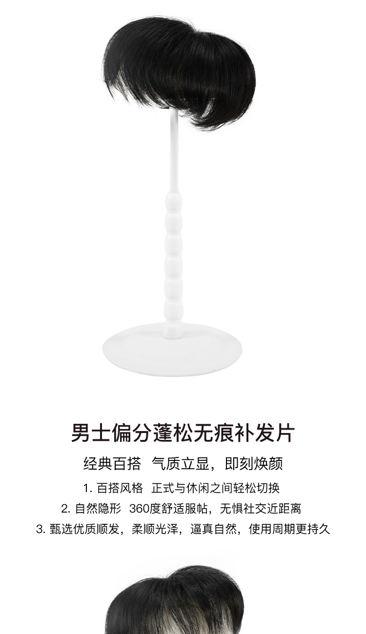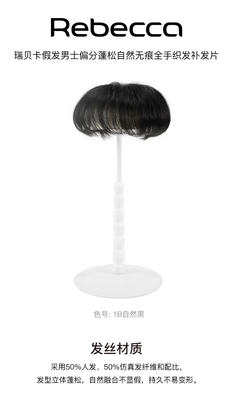 Rebecca瑞贝卡假发男士蓬松自然无痕补发片全真人发全手织补发片