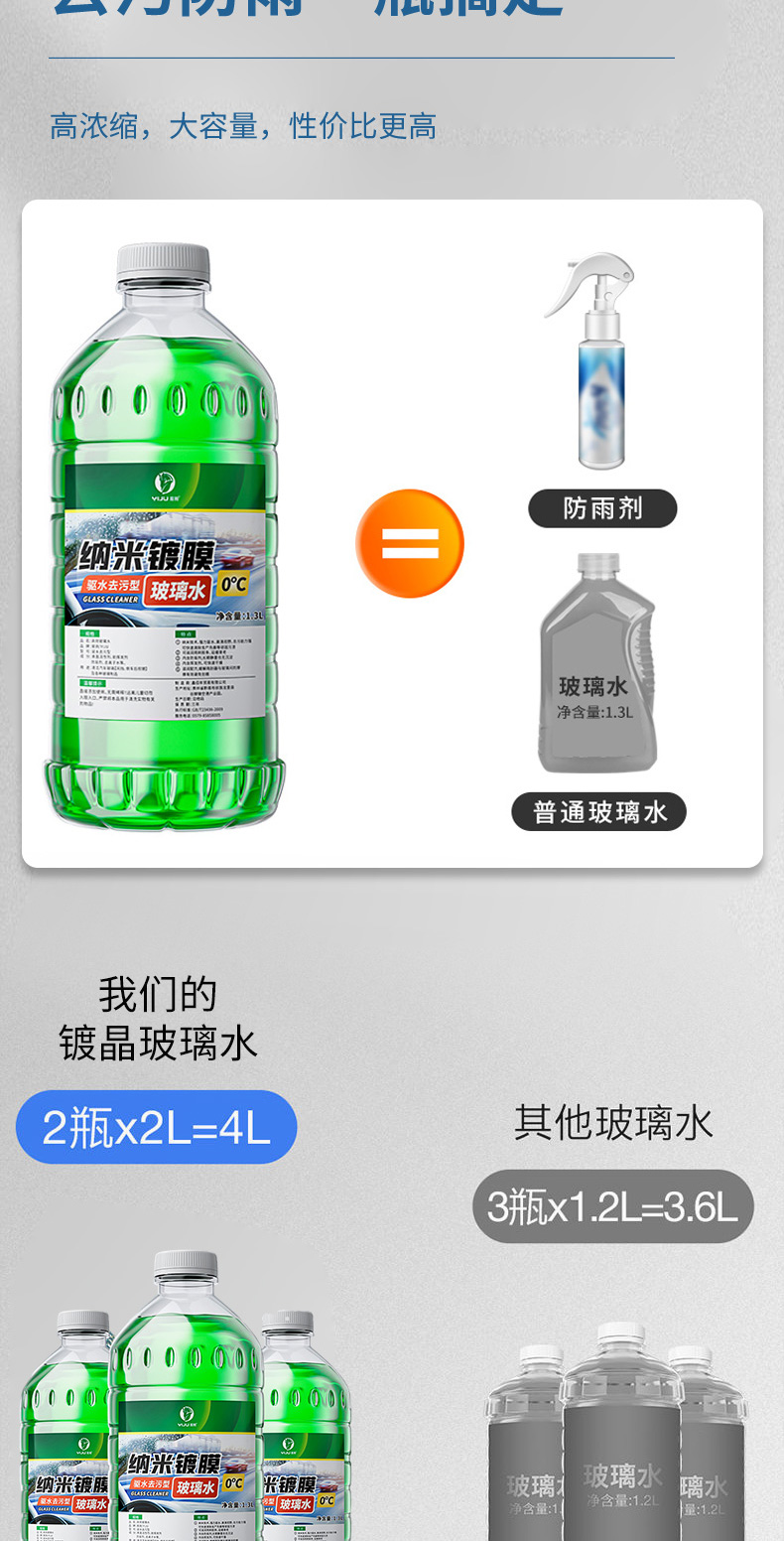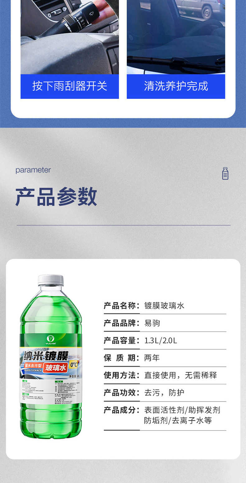 【去污镀膜 2瓶2L装仅需19.9元】易驹 纳米镀膜玻璃水 驱水去污型 四季通用 2L大容量装